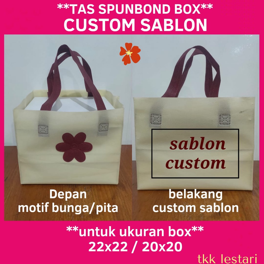 Tas spunbond custom sablon / tas spunbond box 22x22 sablon / tas spunbond 20x20 sablon / tas spunbond box nasi custom sablon / tas spunbond sablon / tas box sablon