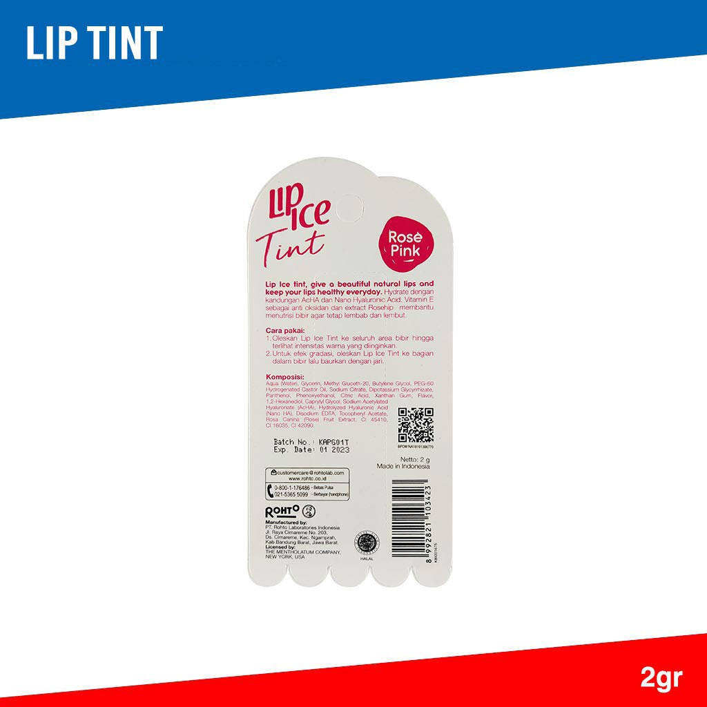 Lip Ice Tint Rose Pink - 2gr (Hydrating, Nourishing, Long lasting up to 8 hours)
