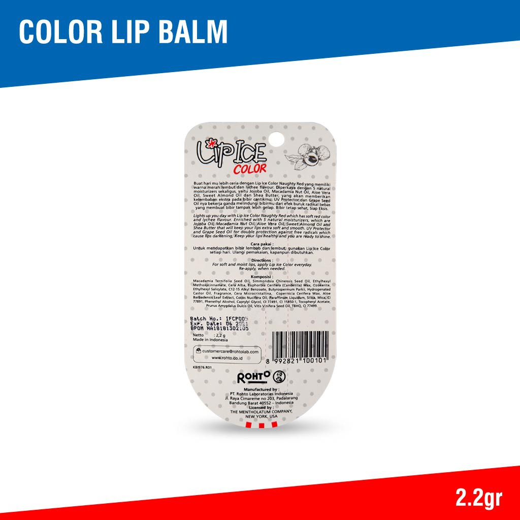 Lip Ice Colour Naughty Red - 2.2gr (Protects lips from the sun Moisturizes & softens lips)