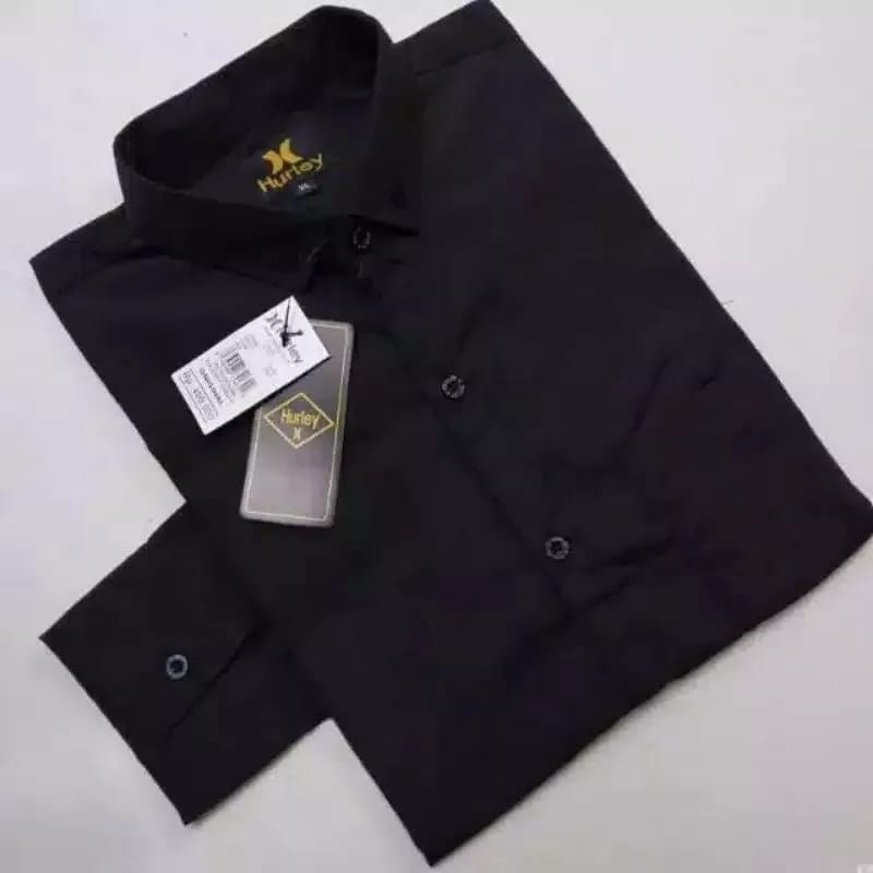 kemeja cowok polos pria lengan panjang slimfit hem pria kantor hitam navy putih maron army