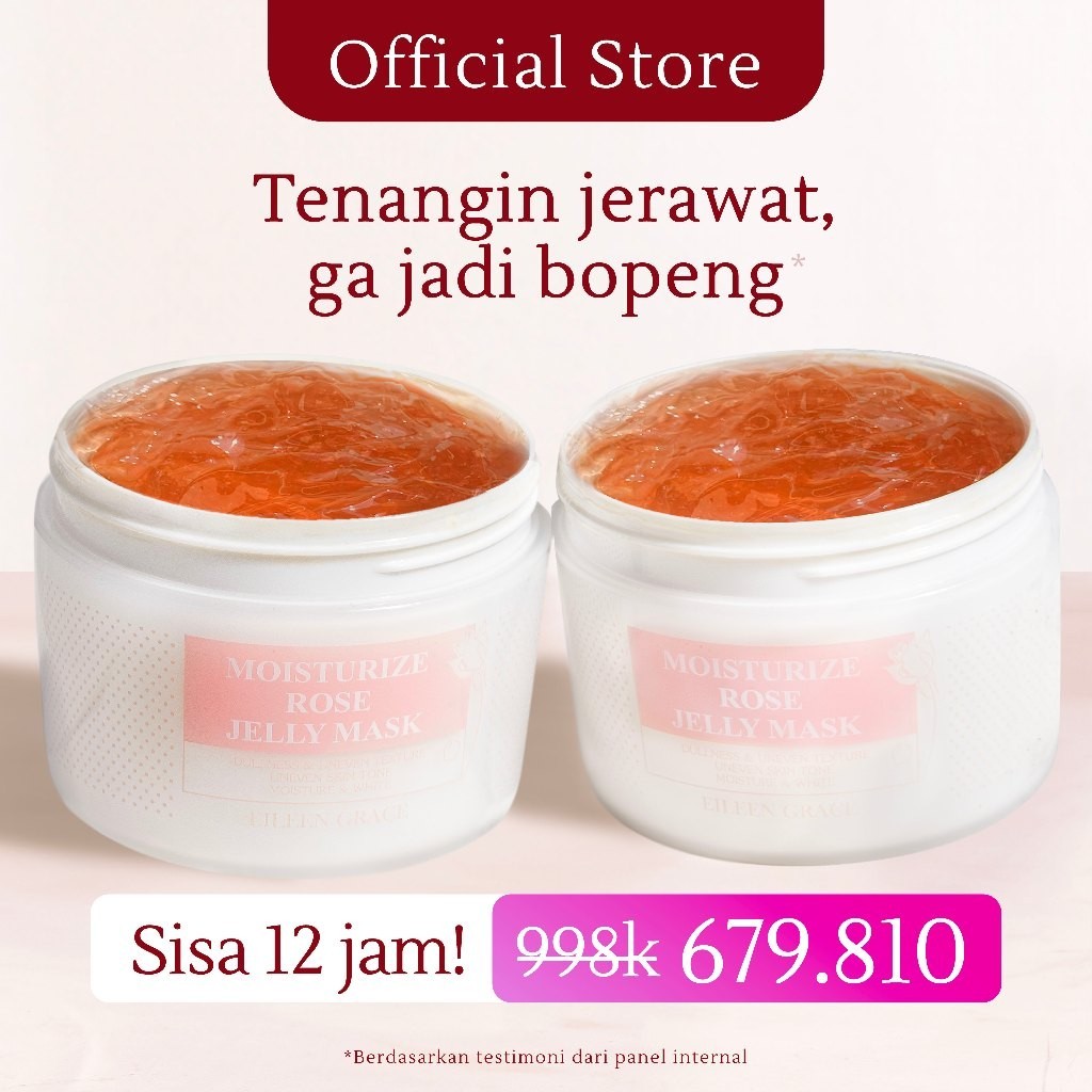 EILEEN GRACE - Moisturize Rose Jelly Mask 300 ml x2 | Masker / skincare jerawat I Kulit kering sensitif | Bekas jerawat | Kemerahan | Bruntusan | Bopeng | Skin Barrier | Mencerahkan | Melembapkan | Hydrating | Moisturizing | Calming & Soothing | Vitamin C