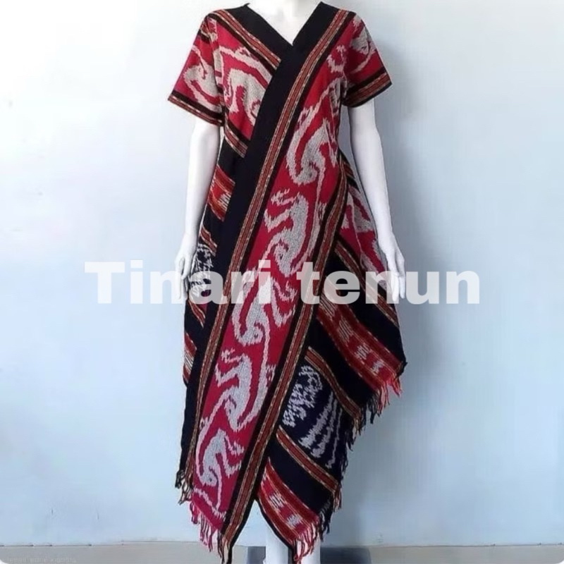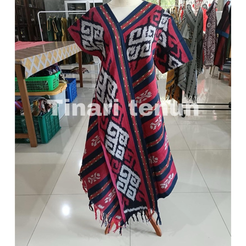 READY STOCK - dress tenun slempang - baju tenun wanita - baju tenun etnik - dress tenun modern - dress etnik modern - dress tenun slendang
