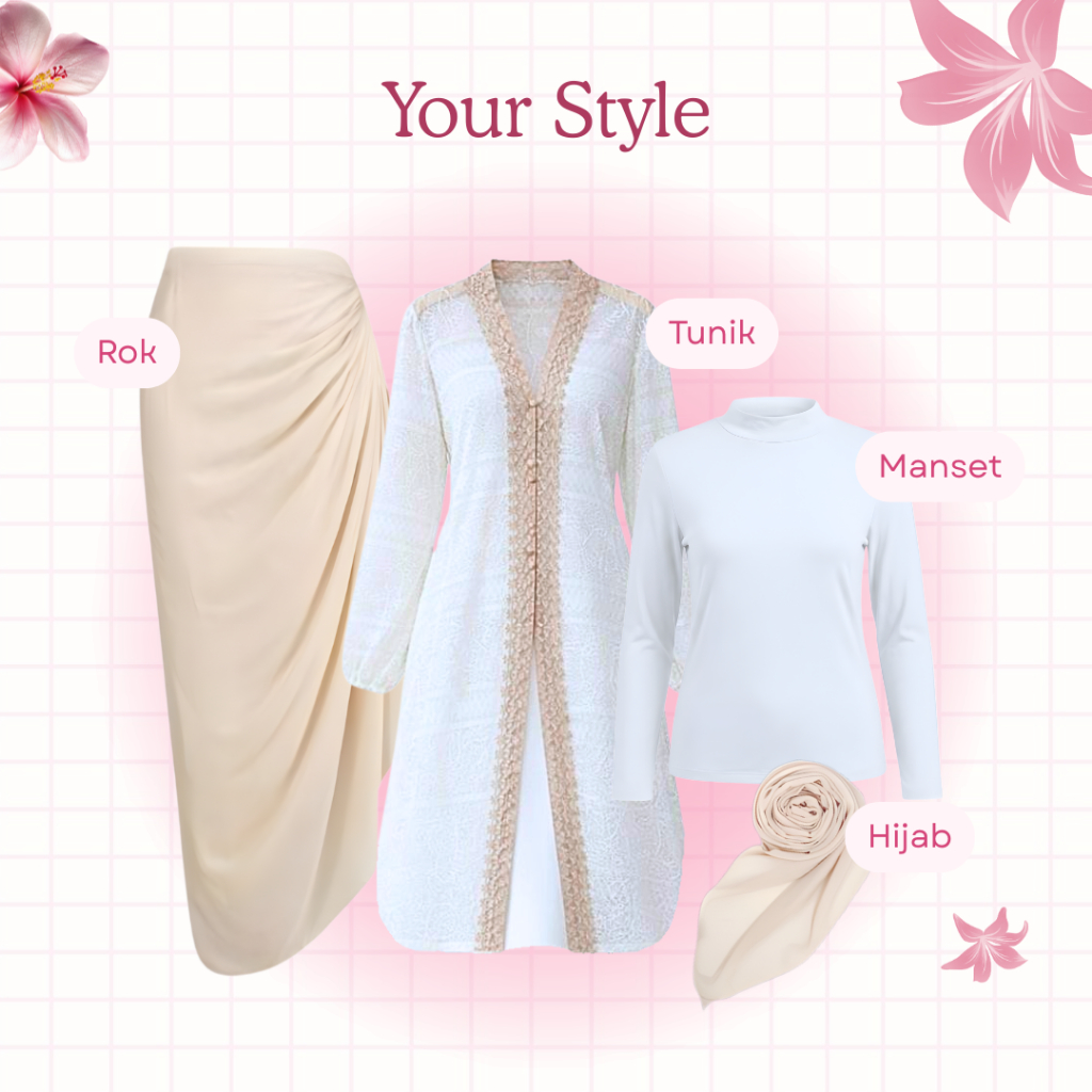LILIA Oneset Wanita (Tunik + Rok + Hijab) Outfit Lebaran 2026 4in1 Cantik Modern Terbaru | CR47
