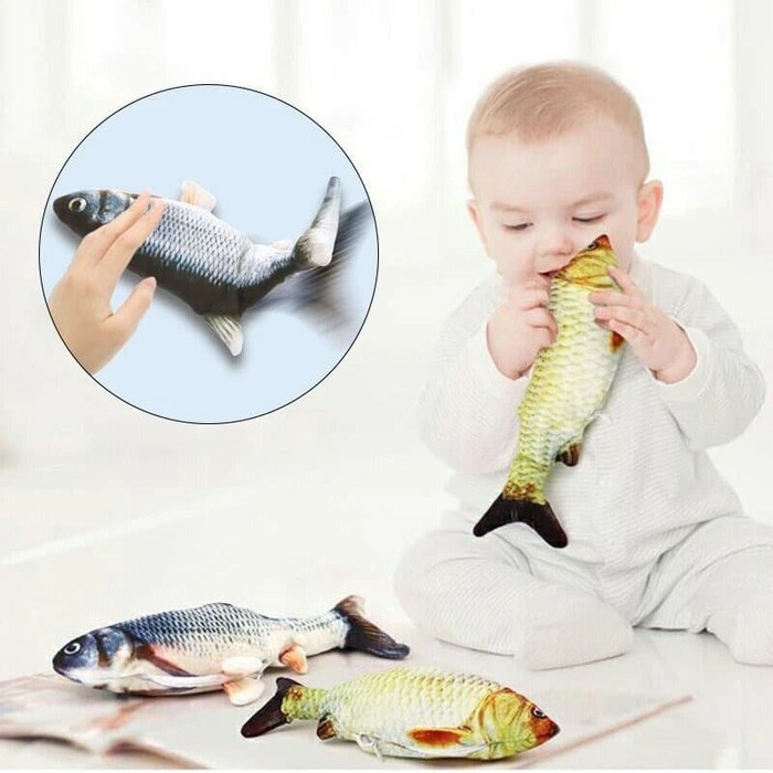KLF - Mainan Kucing Boneka Ikan Gerak Bergerak Cat Toy Dancing Fish / mainan anak TEPOK BAYI / mainan kucing / alat tepok bayi baby / ikan joget klepek klepek