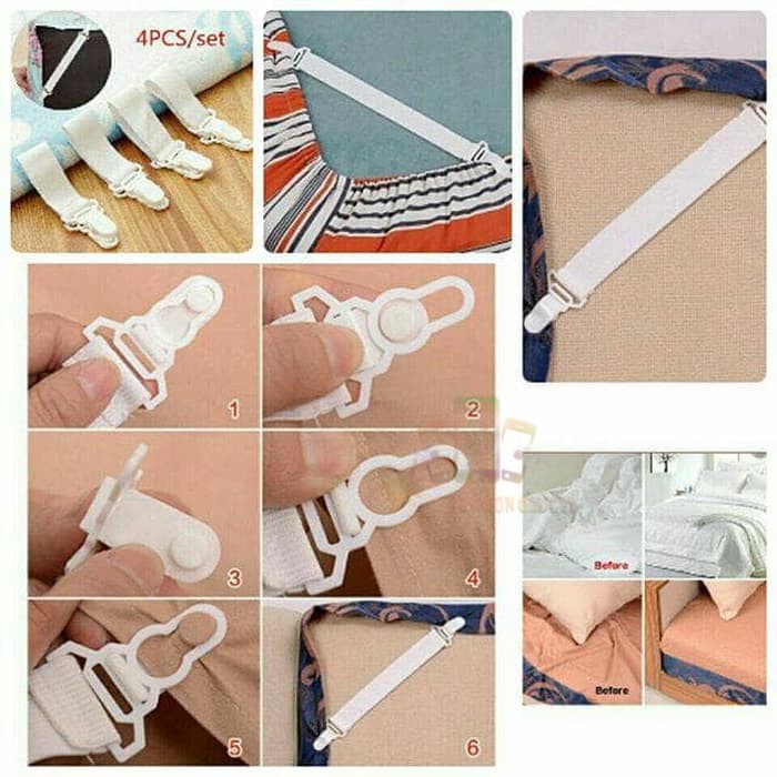 Tali Sprei Elastis Karet Pengait Jepitan Sudut Sprei Anti Geser