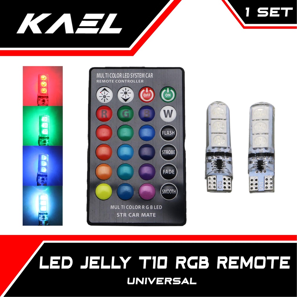 Lampu LED Jelly RGB T10 Remote Mobil-Motor 2 pcs 1 Set 16 Warna Remot Sein-Sen-Riting-Senja-Kota-dll Flash-Strobo-Diam-Smooth