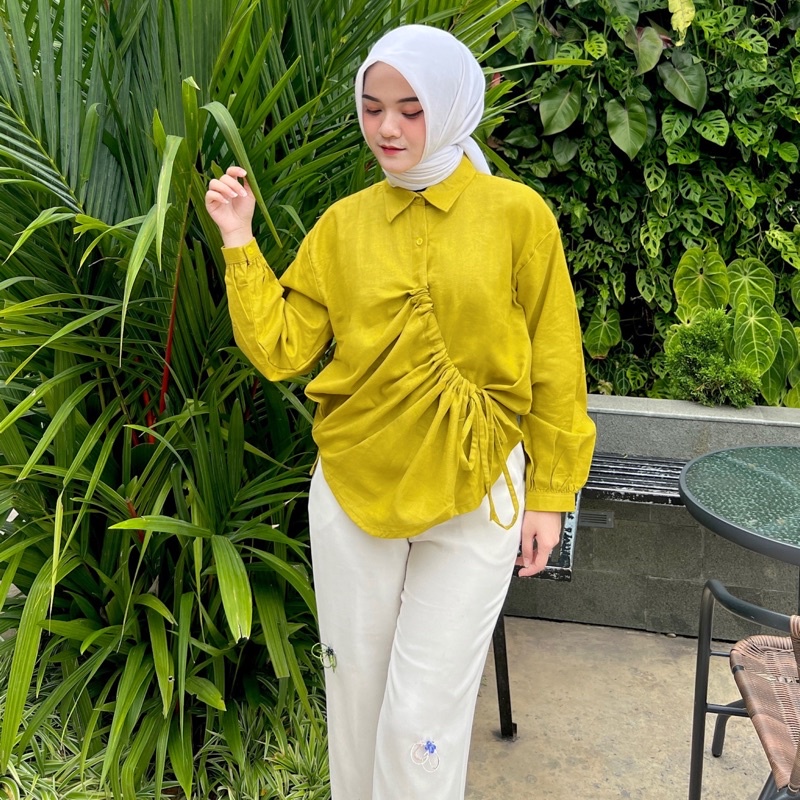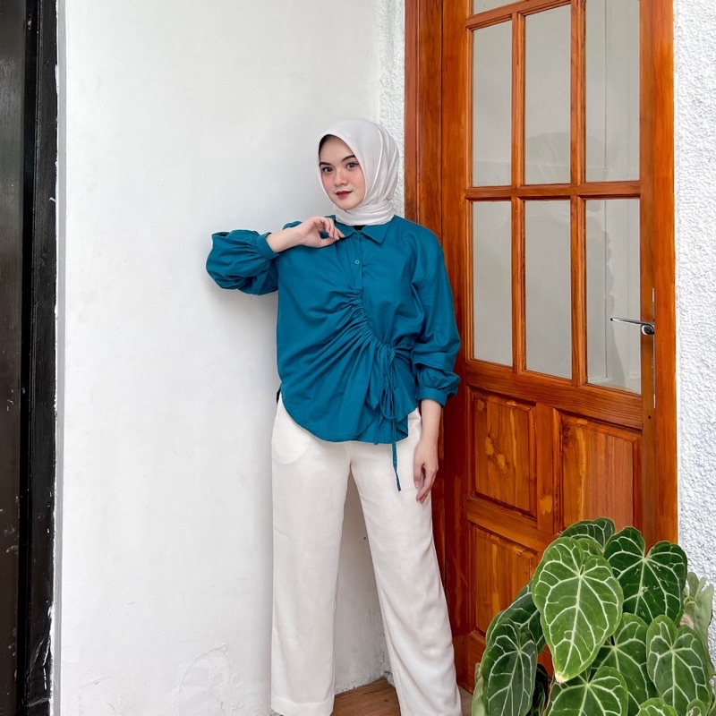 (READY STOCK) Aqella blouse by vitafa id | blouse serut | kemeja serut linen REAL PICTURE