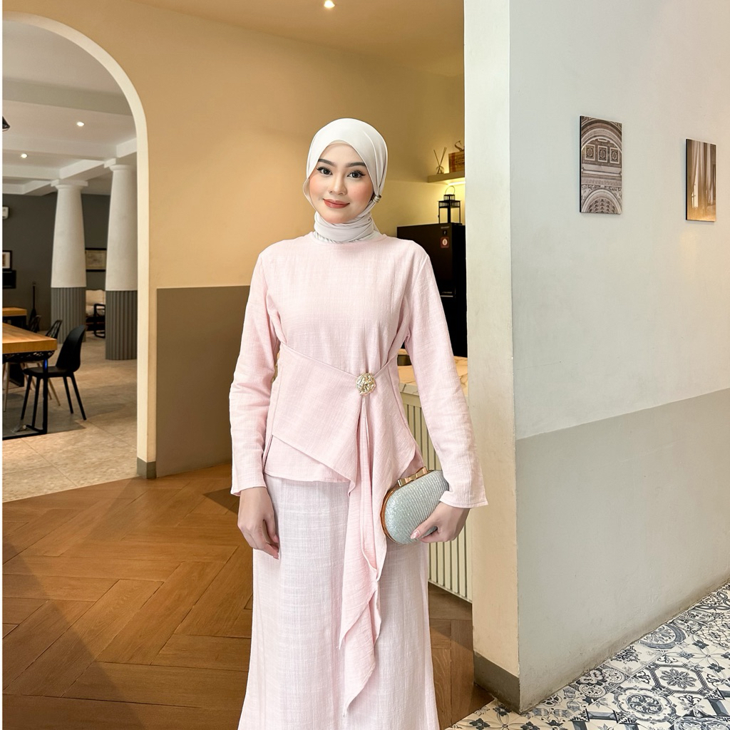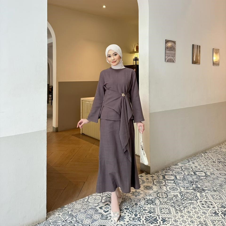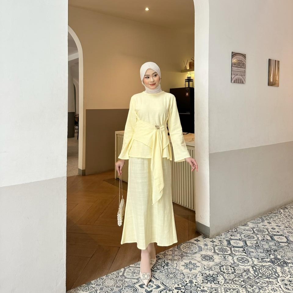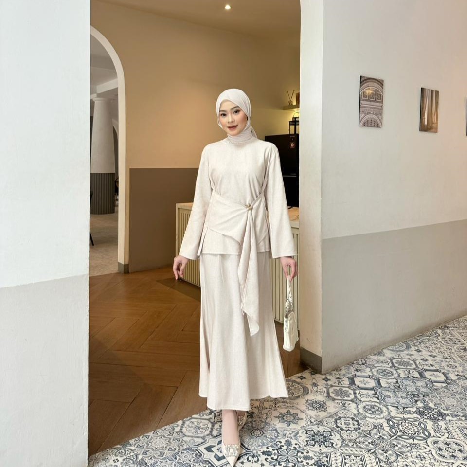 Malaikha Set Linen Atasan Linen Skirt Linen Duyung byvitafa.id