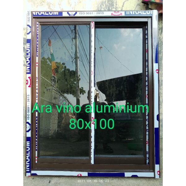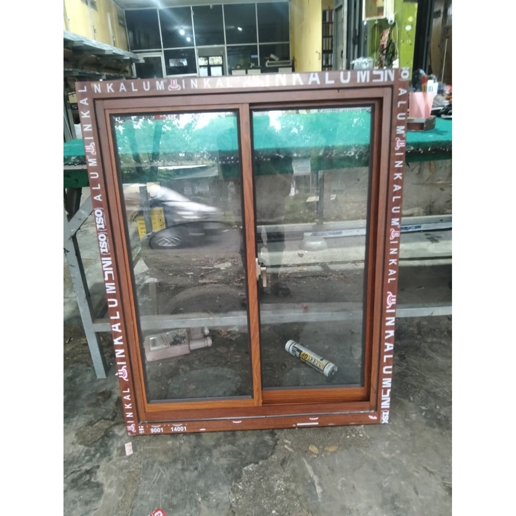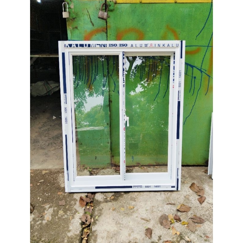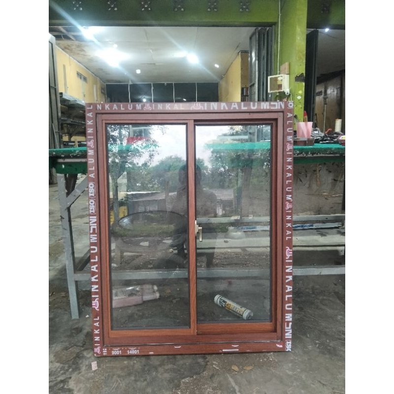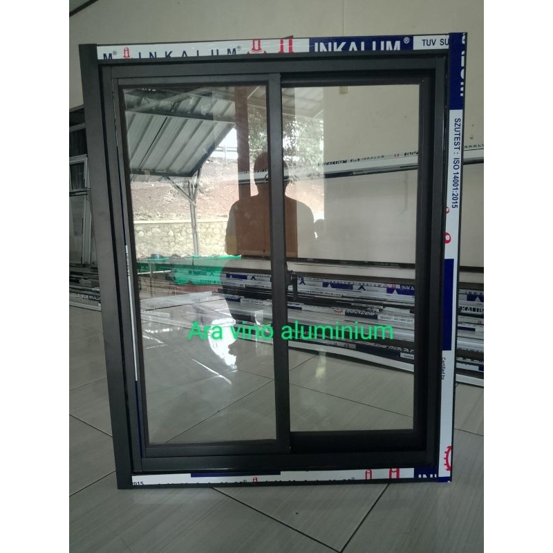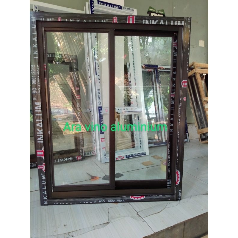 jendela sleding alumunium uk T 100x80 ukuran luar kusen k luar kusen,merek inkalum lebar 3",tebal kaca 5 mm,free packing kayu