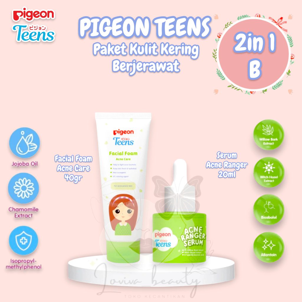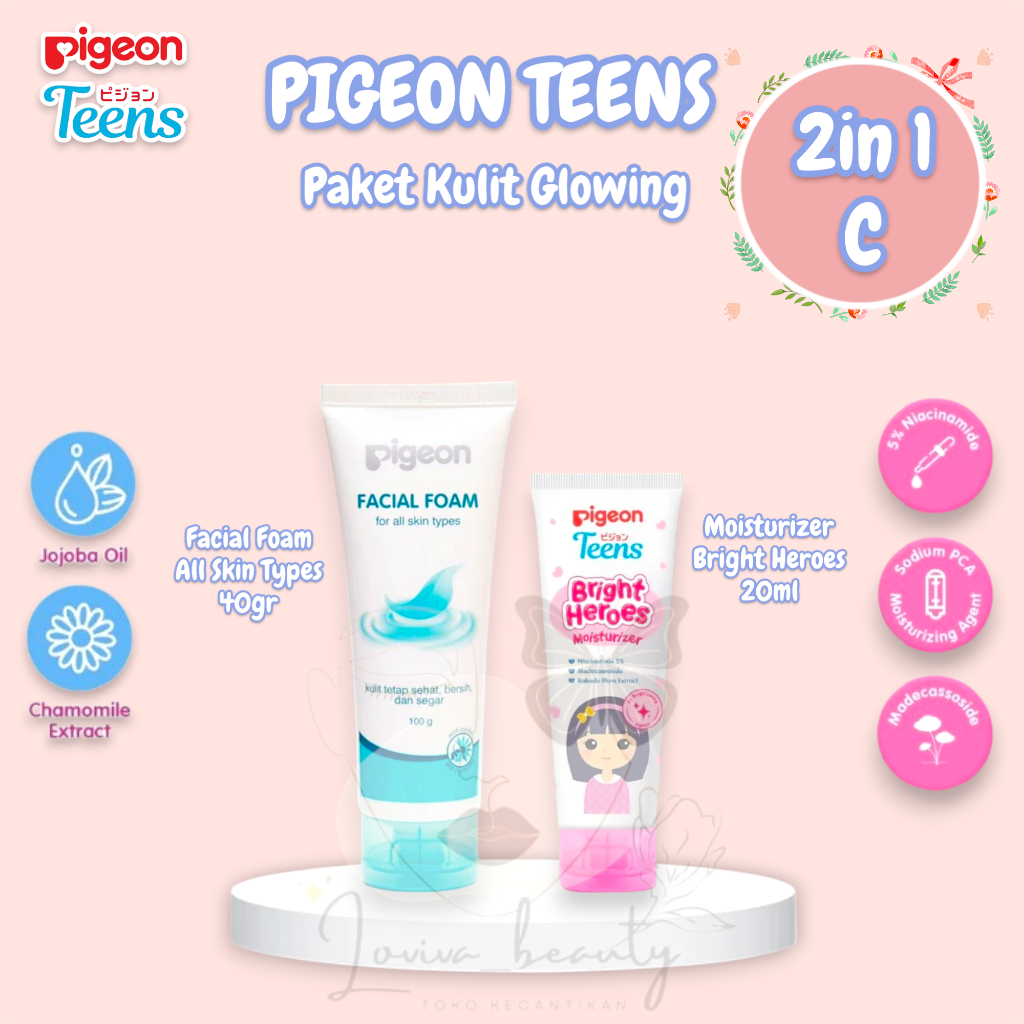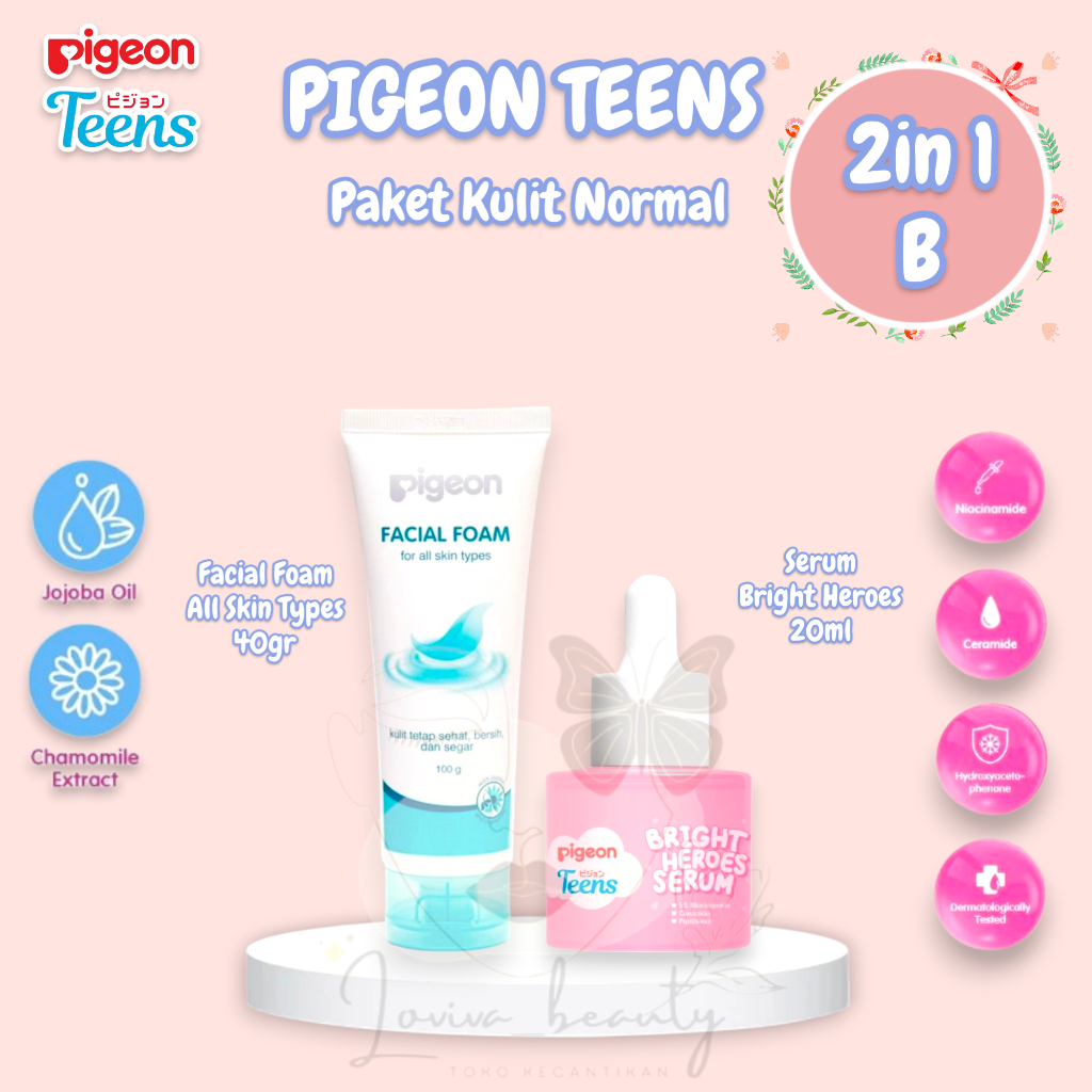 Paket Pigeon 2in1 (Facial Foam / Toner / Serum / Moisturizer) Kulit Normal / Glowing / Flek Hitam / Kering dan Sensitif / Kering Berjerawat / Berminyak / Berminyak Berjerawat / Radang / Kemerahan / Pori-Pori Besar / Beruntusan