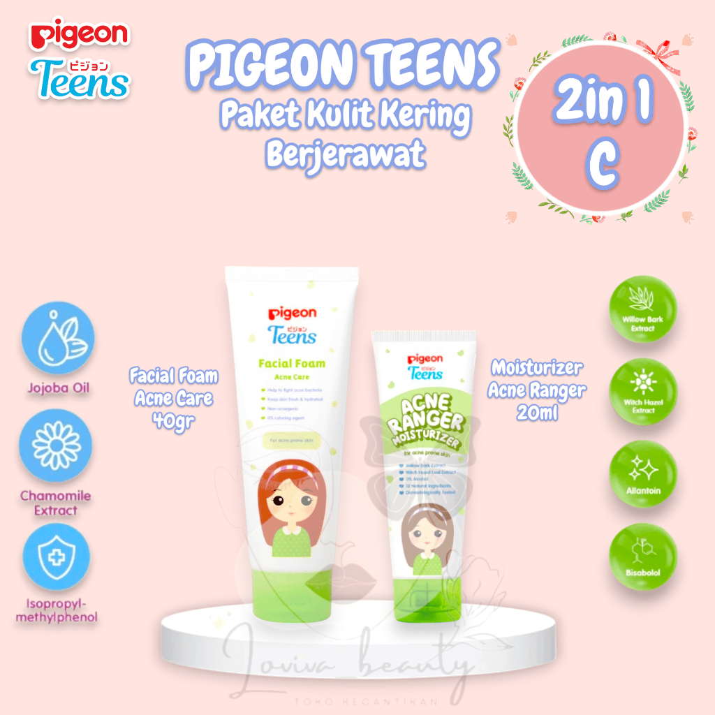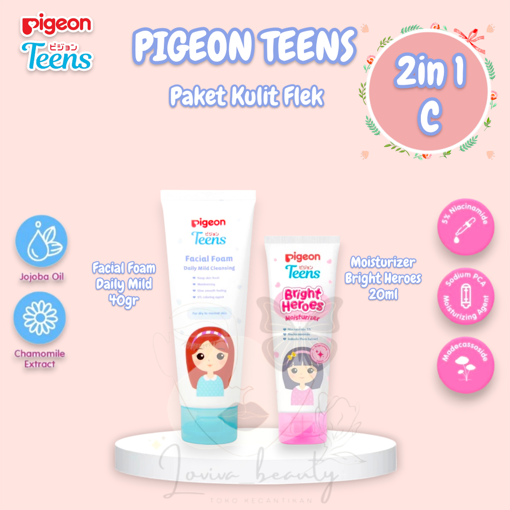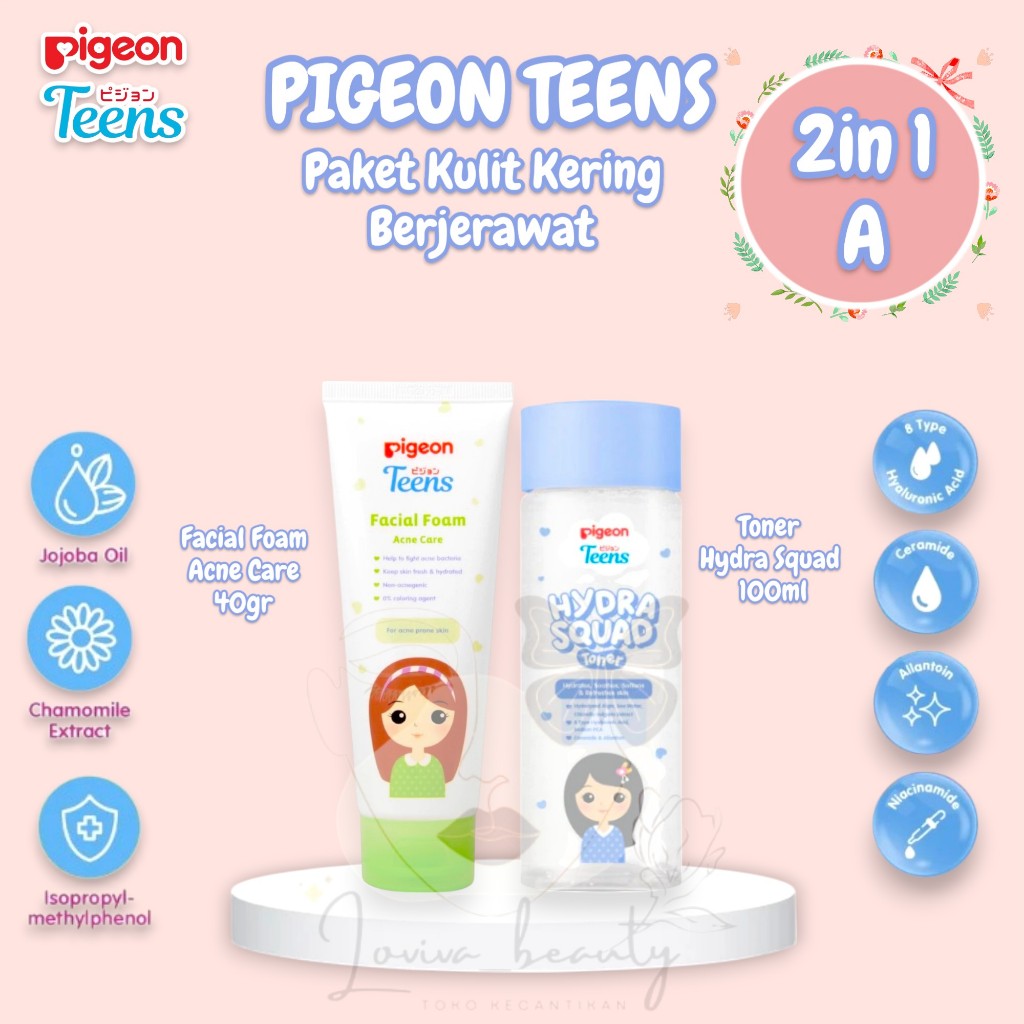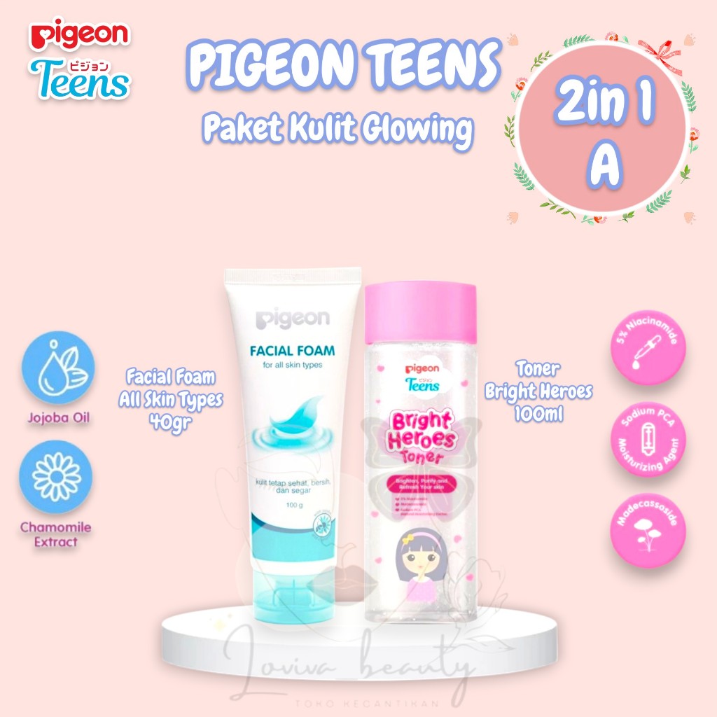 Paket Pigeon 2in1 (Facial Foam / Toner / Serum / Moisturizer) Kulit Normal / Glowing / Flek Hitam / Kering dan Sensitif / Kering Berjerawat / Berminyak / Berminyak Berjerawat / Radang / Kemerahan / Pori-Pori Besar / Beruntusan