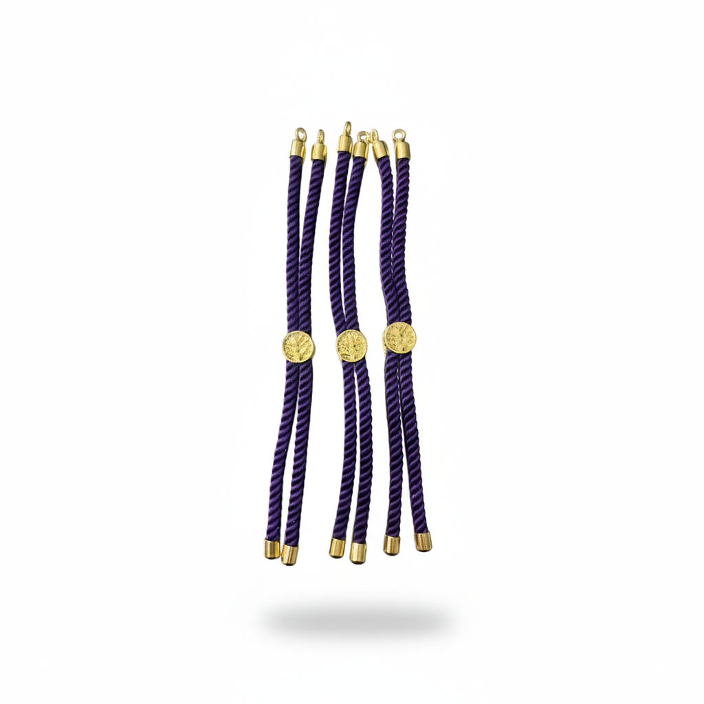 Aineed | Gelang Serut Korean - Gelang Aneka Warna Ungu - Gelang Tali - Charm Berwarna Emas