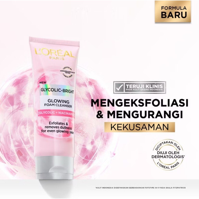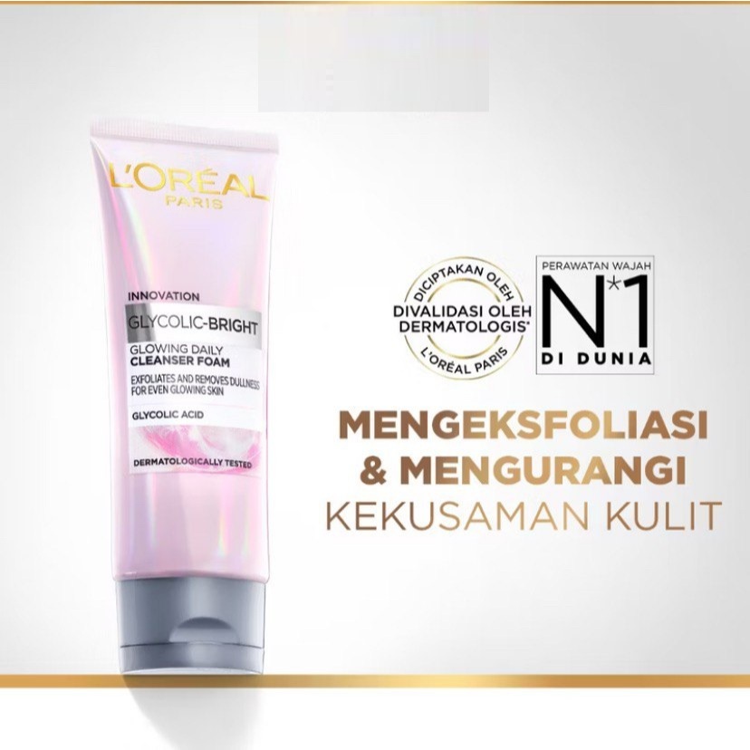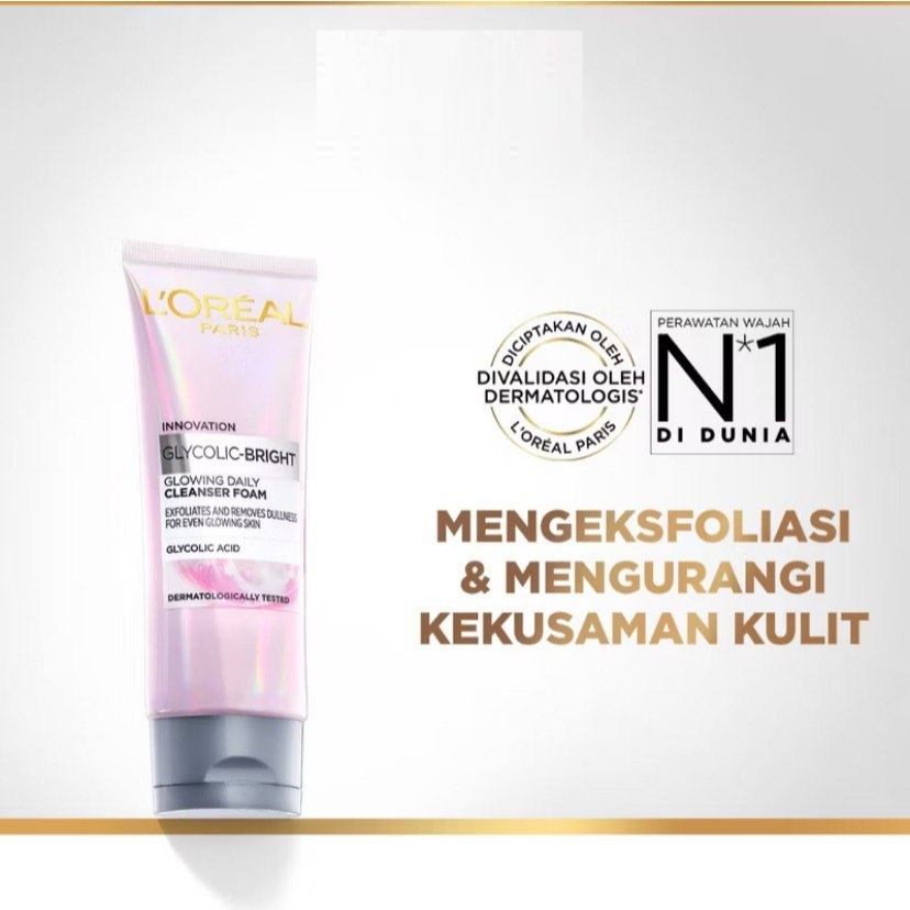 L'Oreal Paris Glycolic Bright Daily Cleanser Foam - Skin Facial Wash Glyco Loreal Glyco Acid AHA Exfoliating Anti Dark Spot