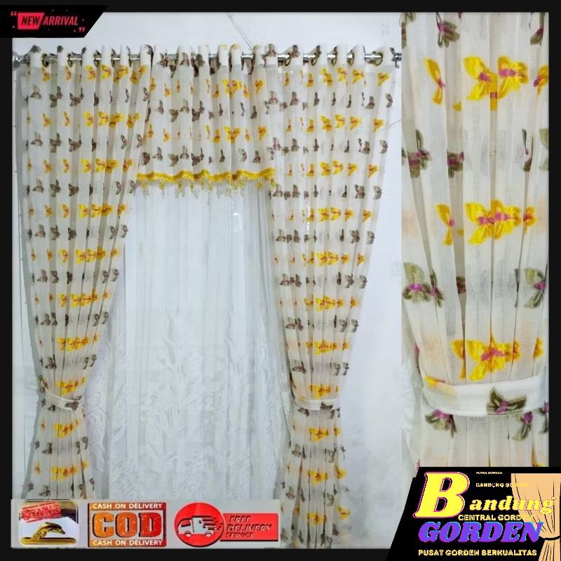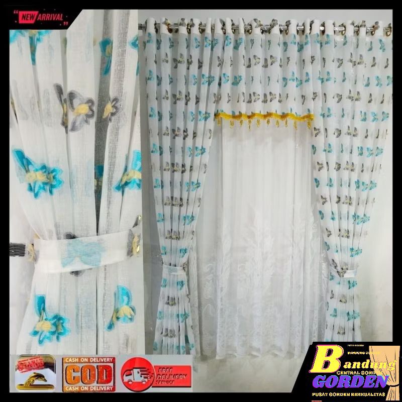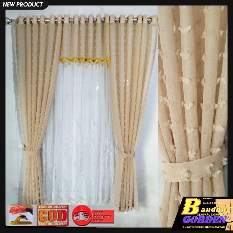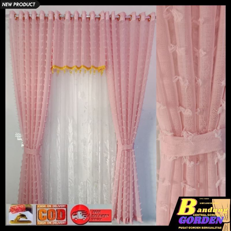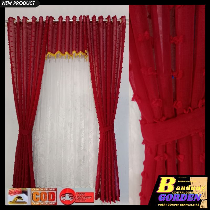 gorden pintu 1 set gorden vitrase pintu rumah motif ruby mewah model smokring ukuran L. 140×T.250cm