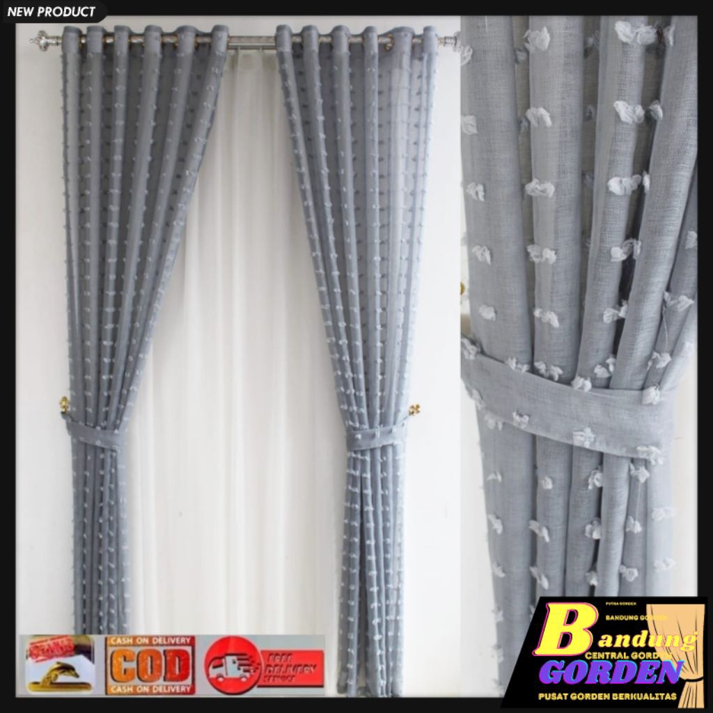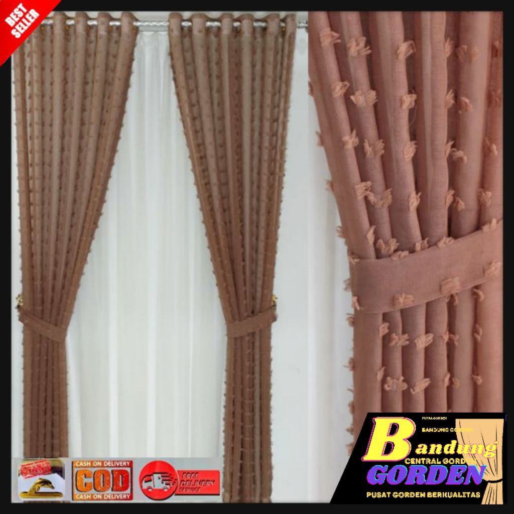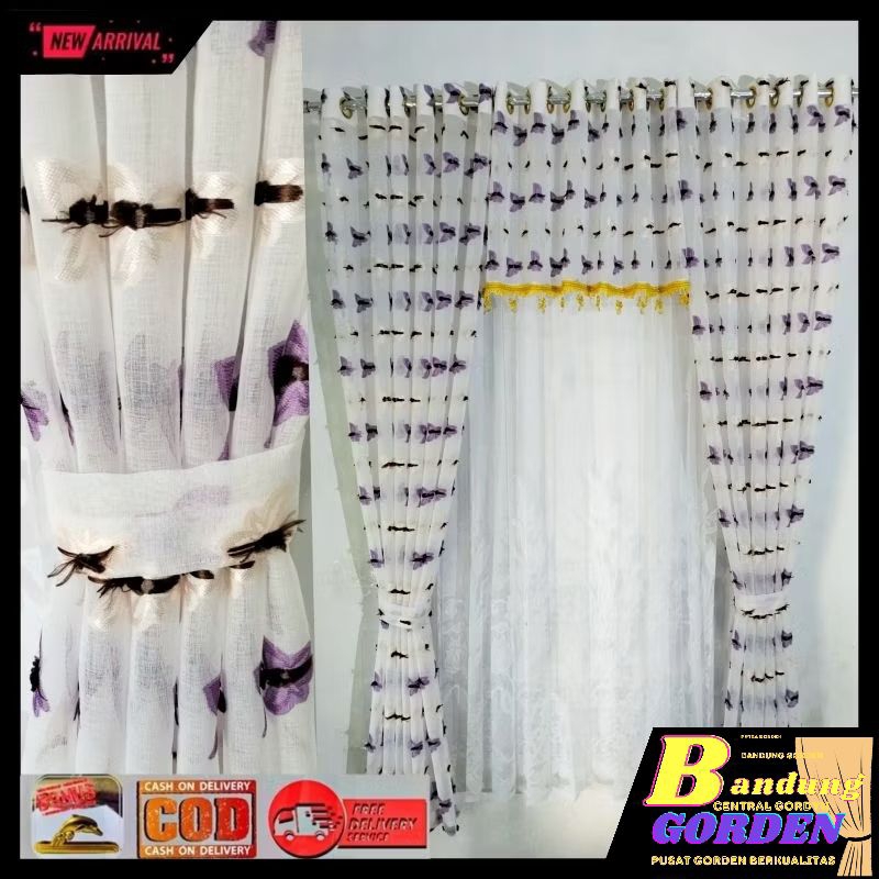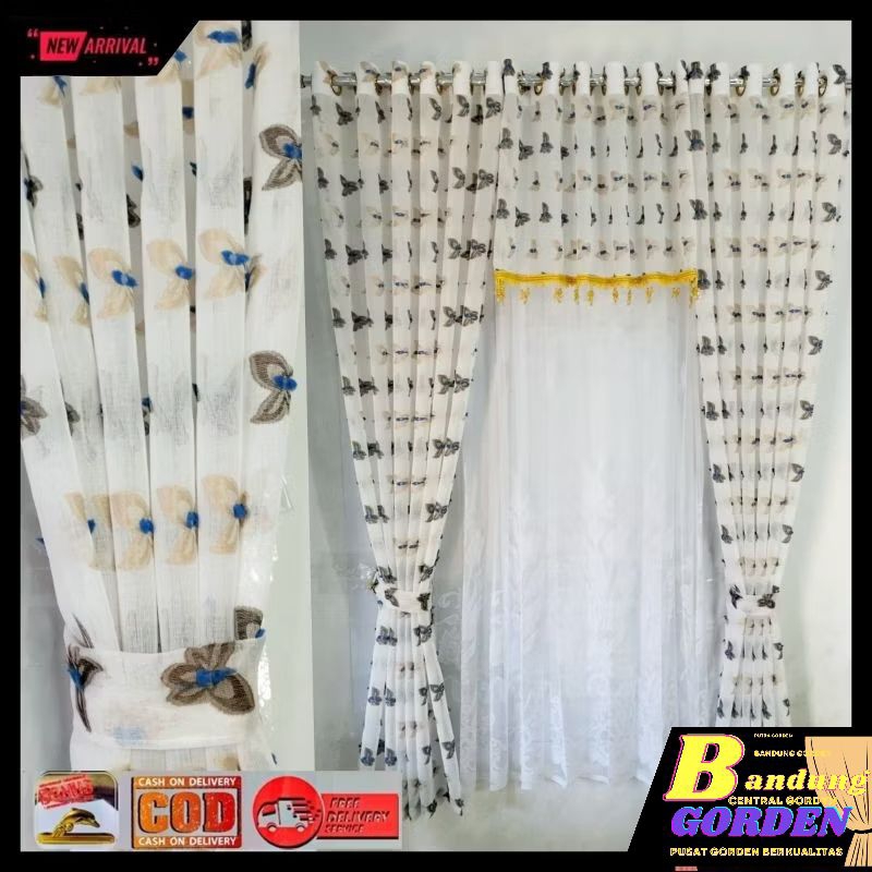 gorden pintu 1 set gorden vitrase pintu rumah motif ruby mewah model smokring ukuran L. 140×T.250cm