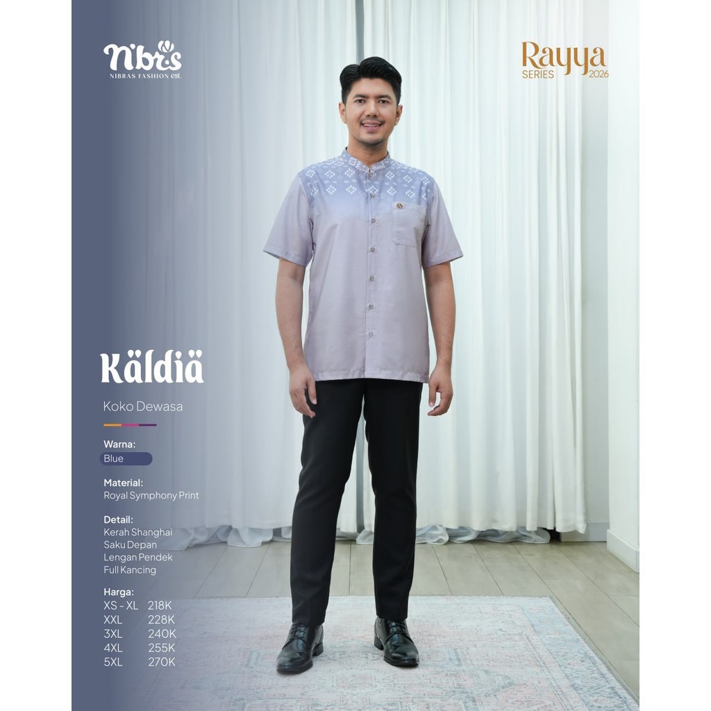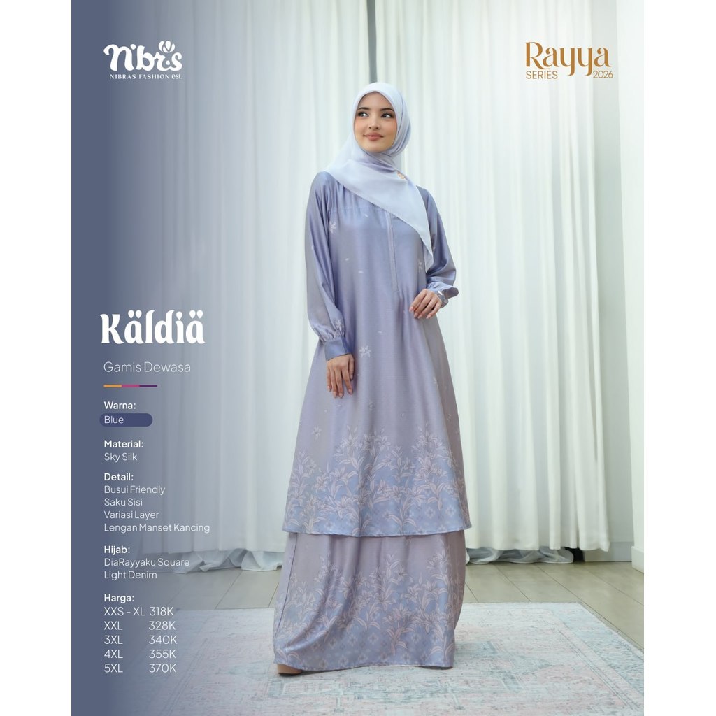 Nibras Sarimbit Kaldia Blue 2026 Koko Lengan Pendek Gamis Bahan Sky Silk Royal Motif Bunga Terbaru