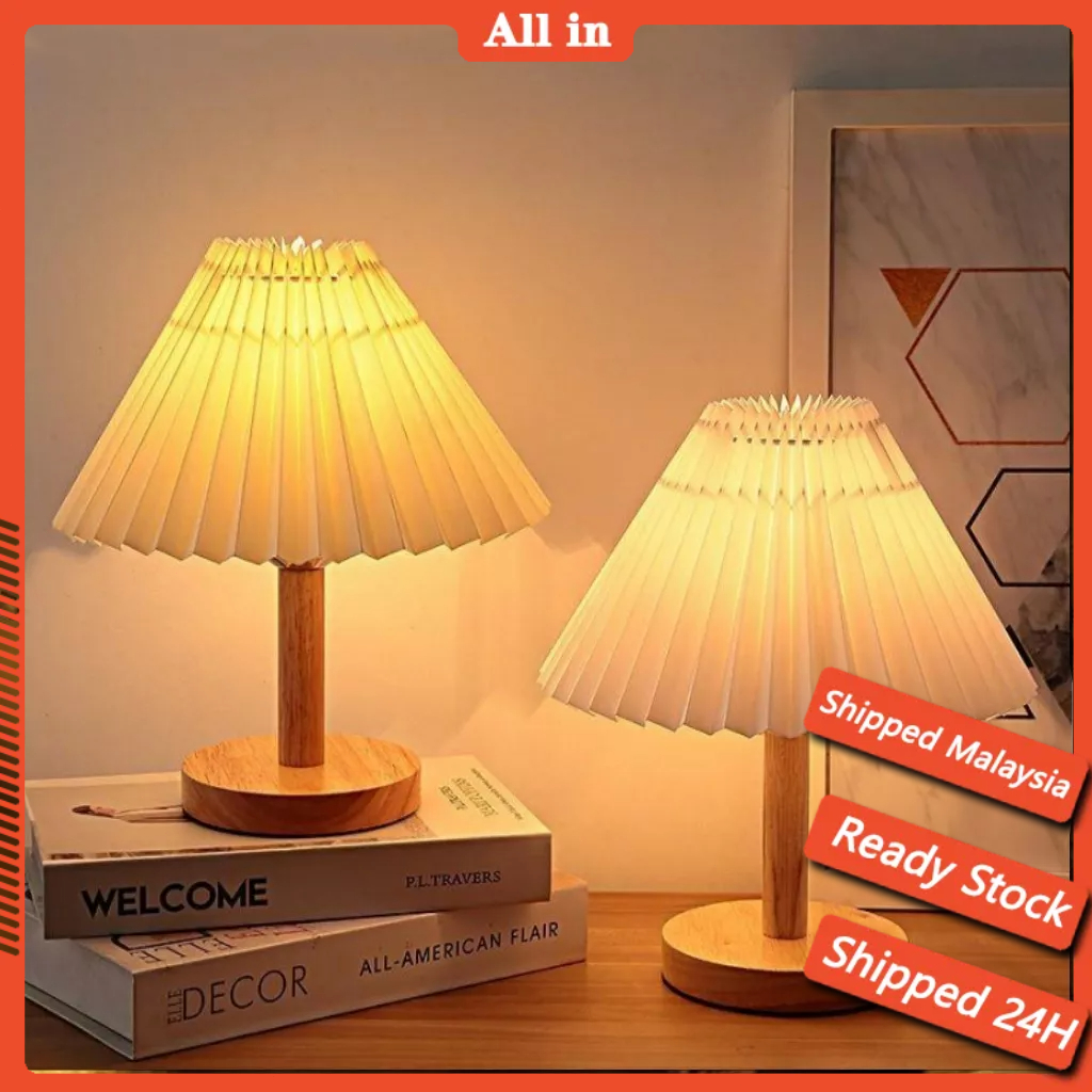 【 GARANSI FREE】Lampu Meja Minimalis / Lampu Tidur Meja / Korean retro pleated Vintage LAMPAN Decorative table lamp Retro Pleated Lamp Lampu Meja Tidur Minimalis Lipit Korean