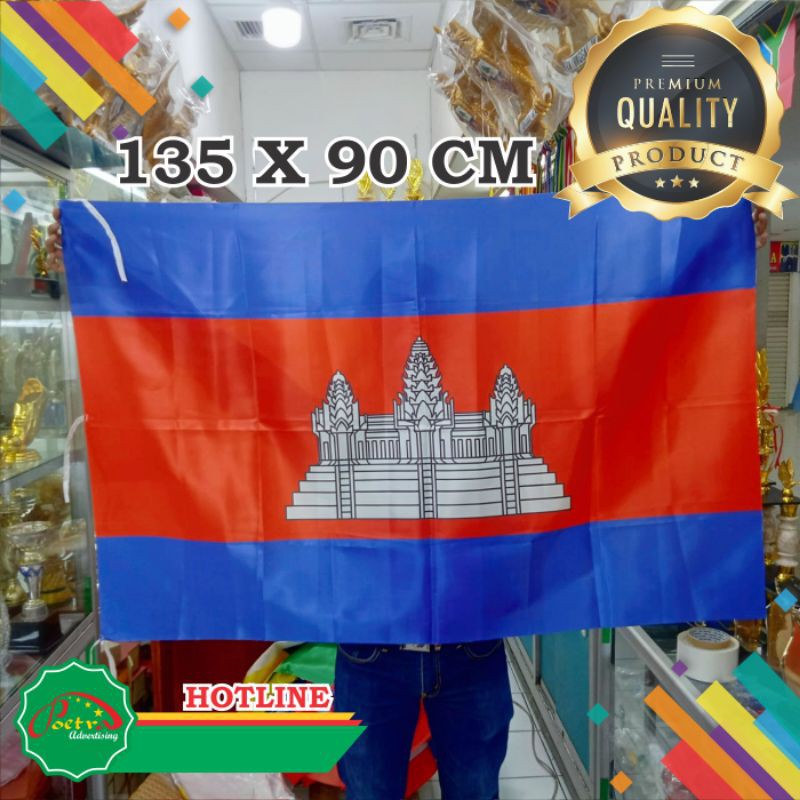 Bendera Negara Kamboja 135 cm X 90 cm Bahan saten