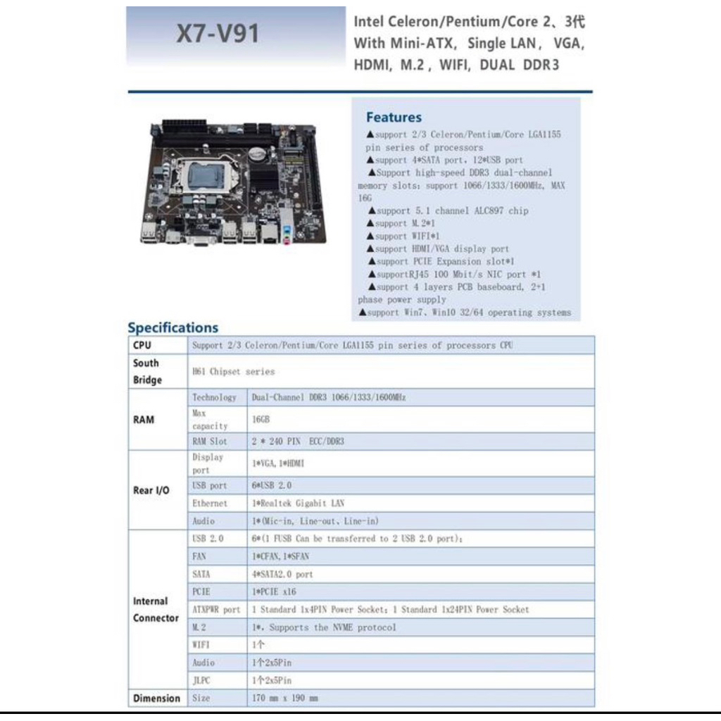 H61 MotherBoard LGA 1155 PC Gaming Mainboard Dual Channel DDR3 Desktop Chipset 3rd Gen