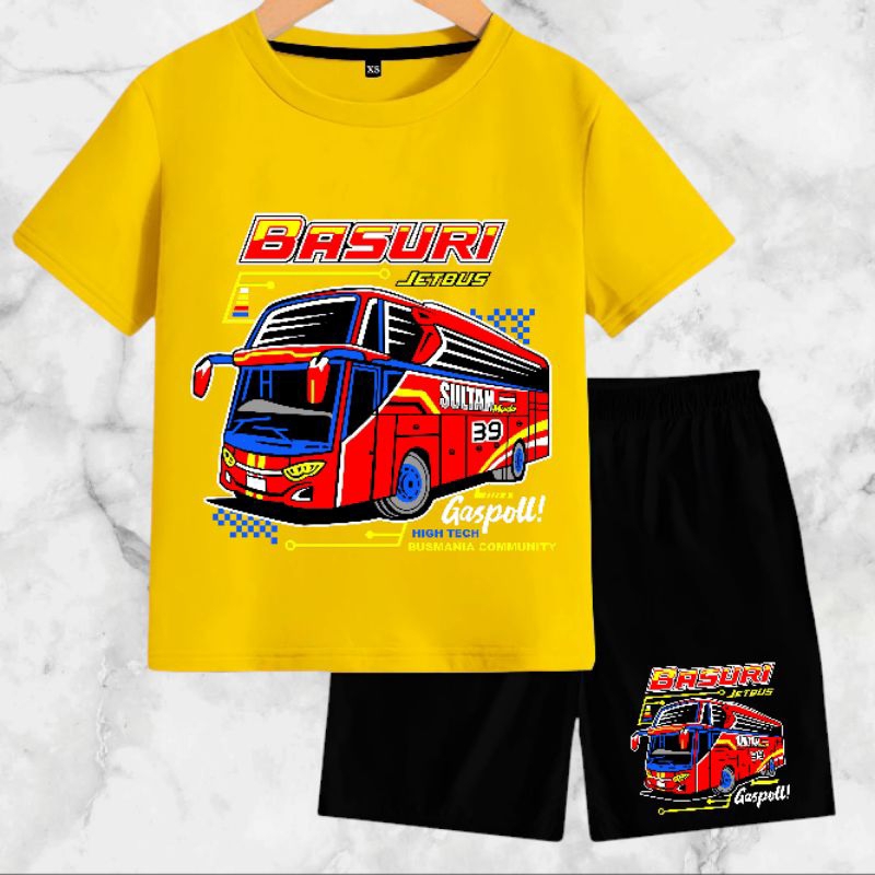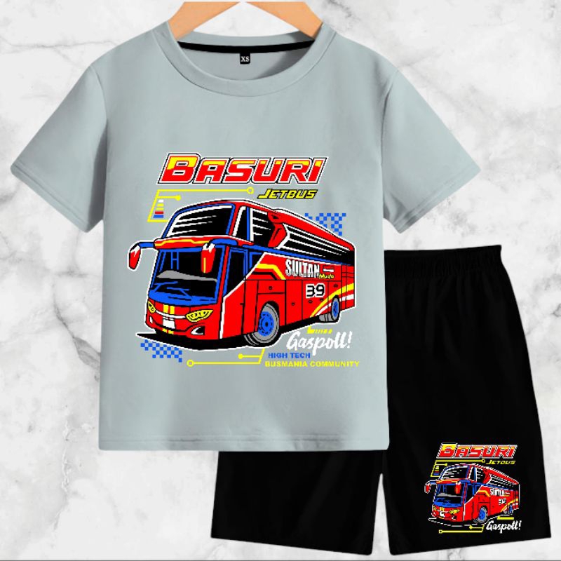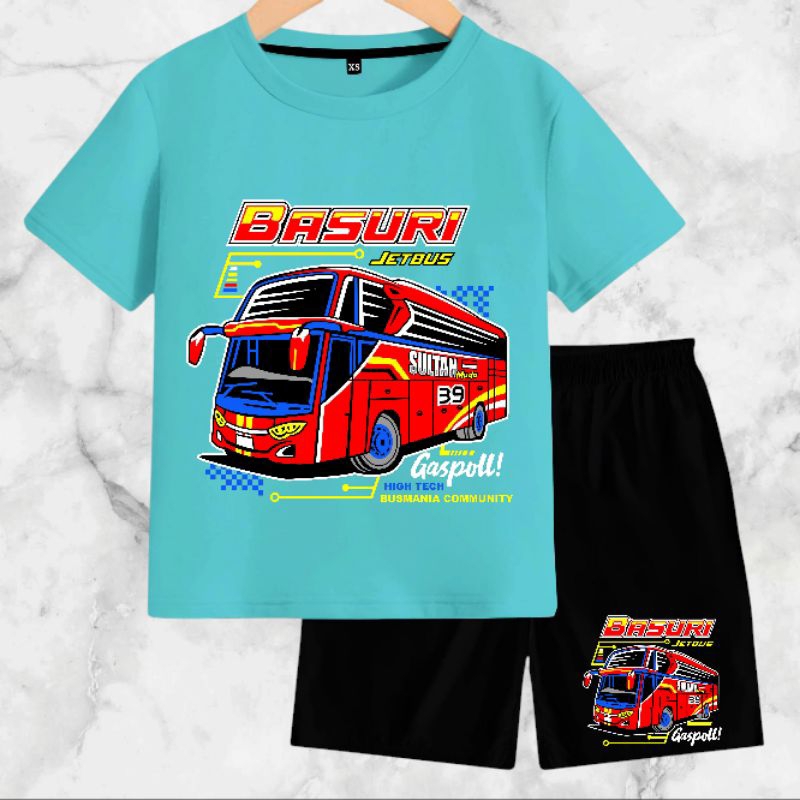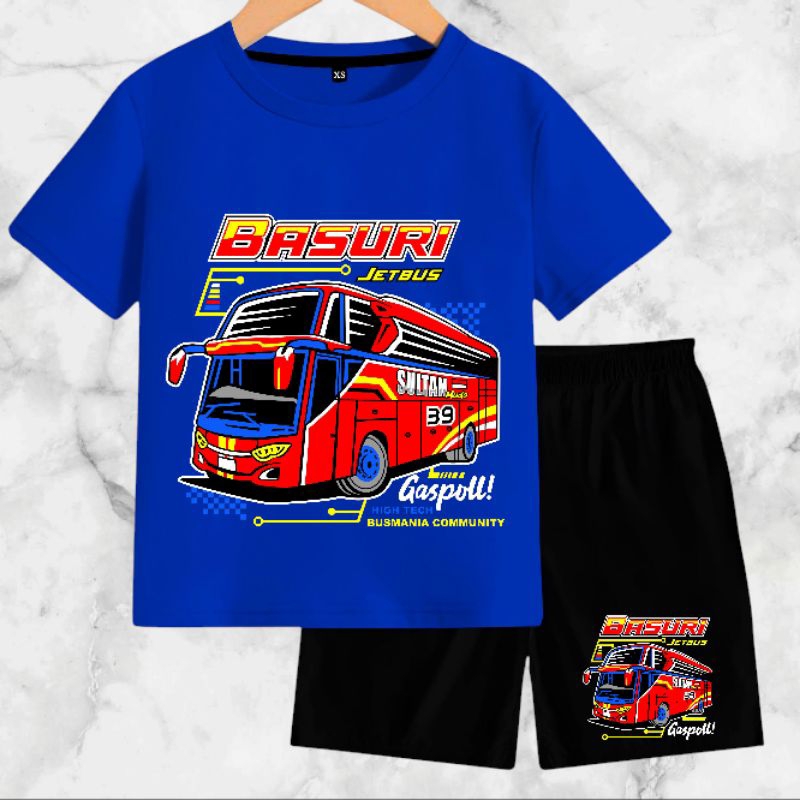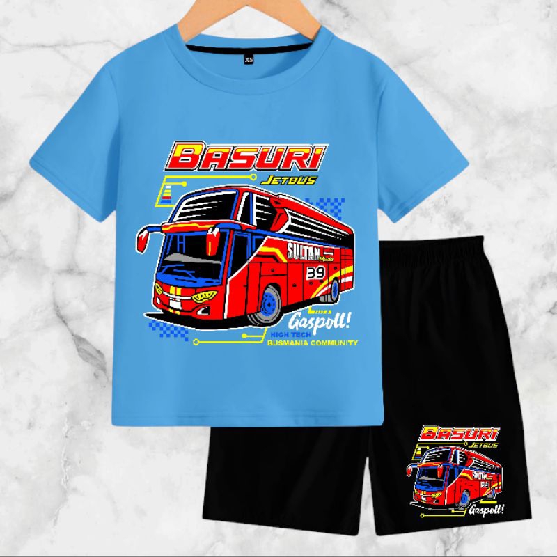 Setelan Baju Anak-Anak Jet Bus Basuri dengan Bahan Kaos Catton Soft 24s - Motif, Kids, Fashion, Celana