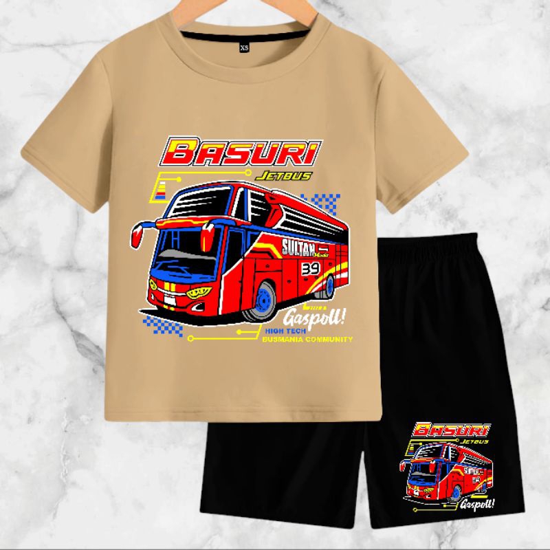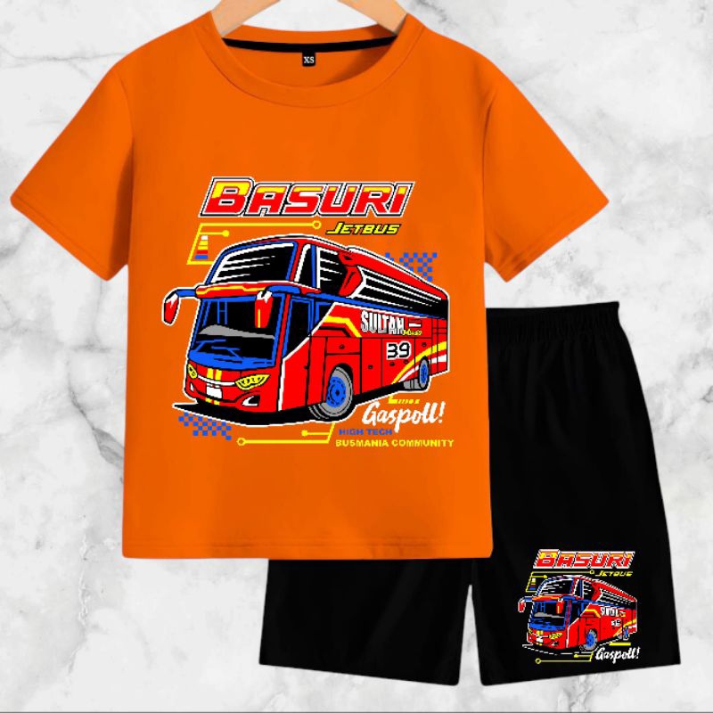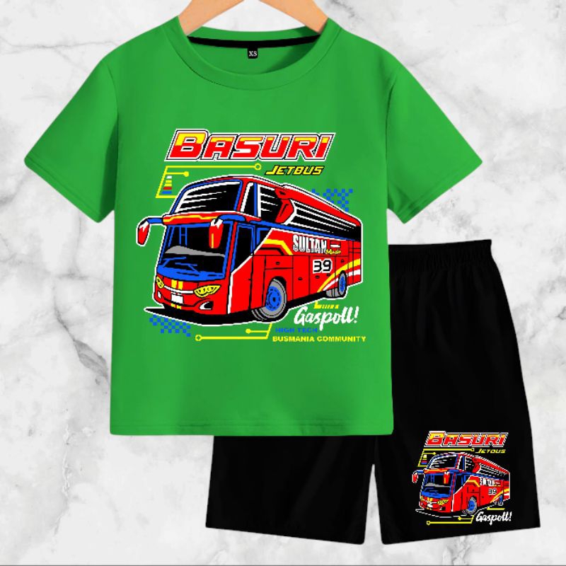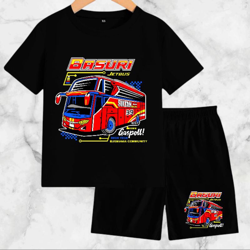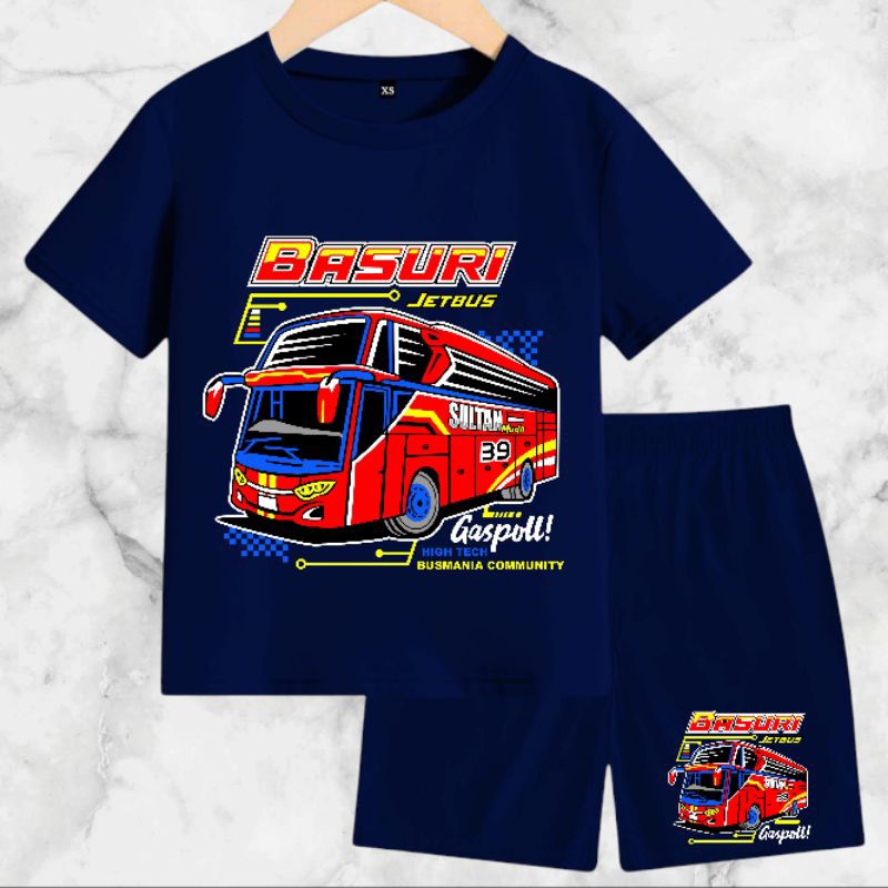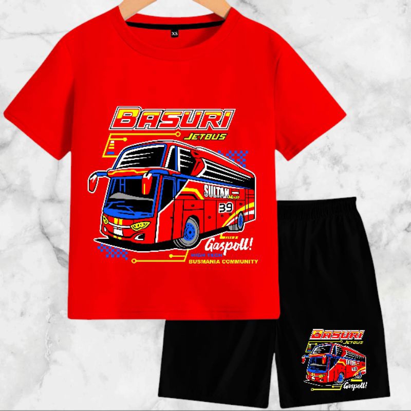 Setelan Baju Anak-Anak Jet Bus Basuri dengan Bahan Kaos Catton Soft 24s - Motif, Kids, Fashion, Celana