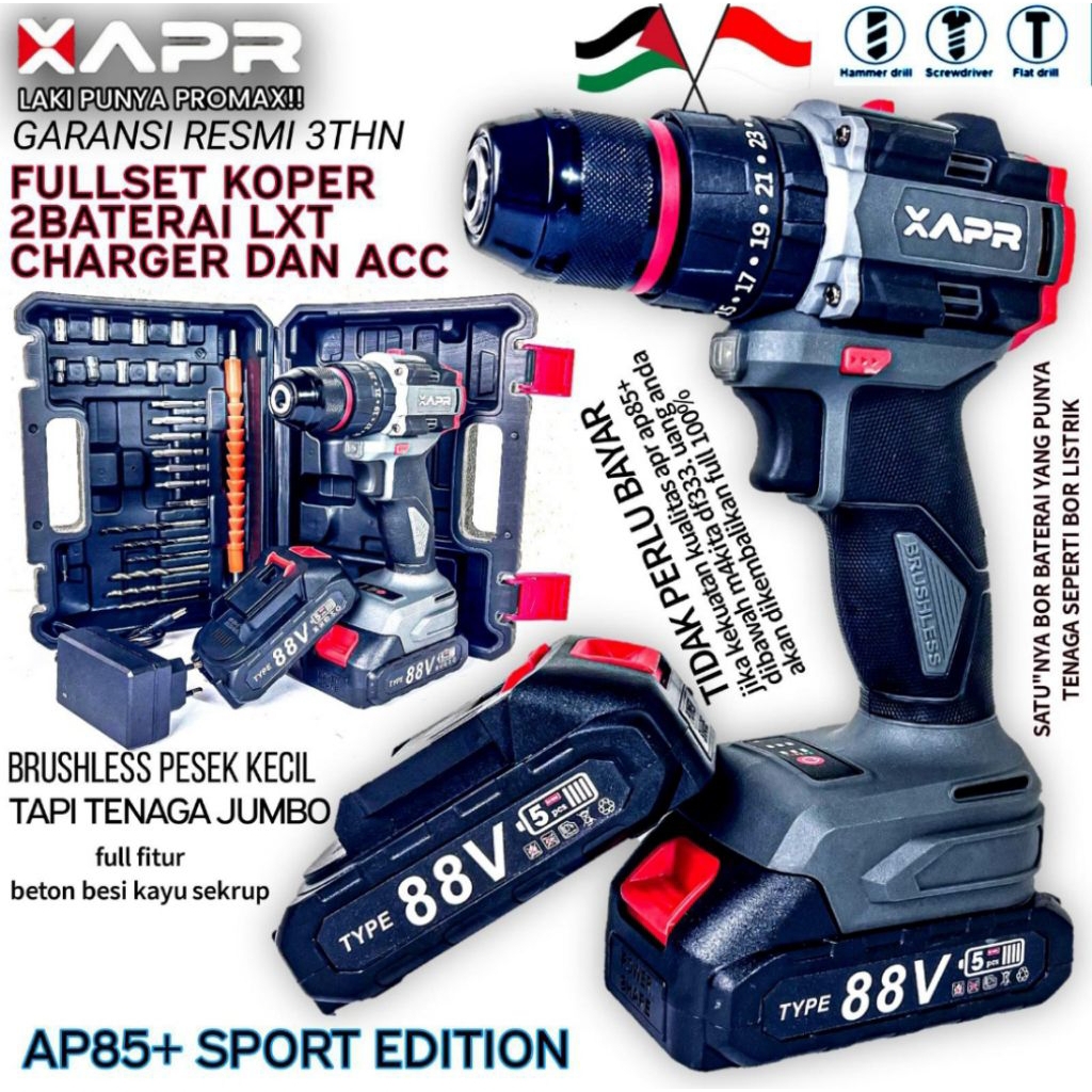 APR BOR IMPACT DRILL AP85+ 10MM KEYLESS AUTO LOCK 2 BATRE LXT 88Vf 5 cell. tembok besi kayu