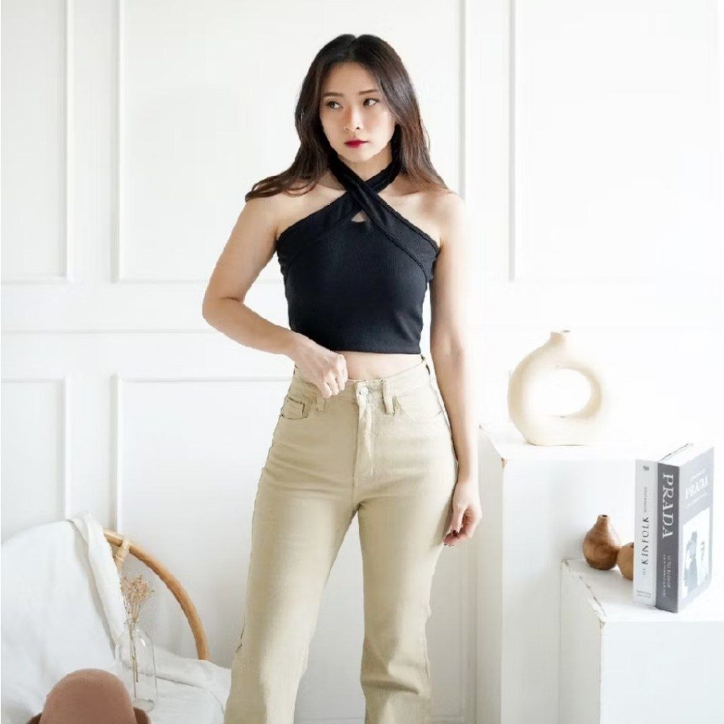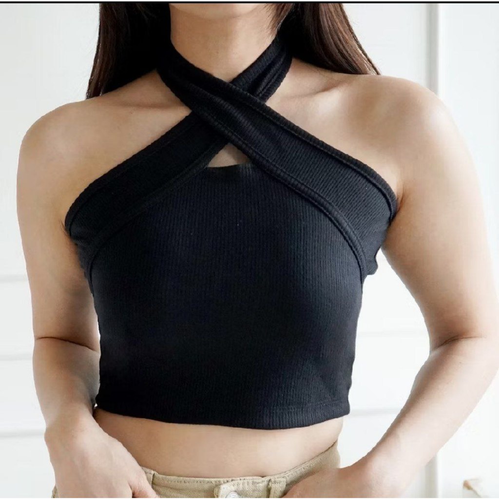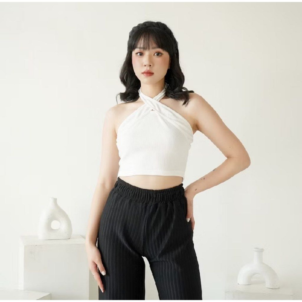 Reva-Tanktop Wanita Polos Top Knit Tank Top putih dan hitam