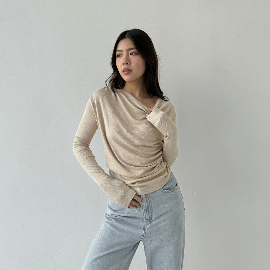 APRIL TOP | Atasan Knit Wanita Korean Top Baju Knit Wanita Lengan Panjang Basic Long Sleeve