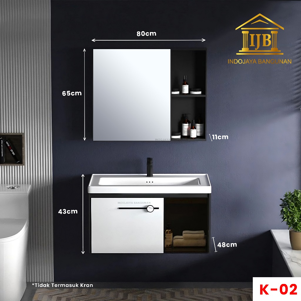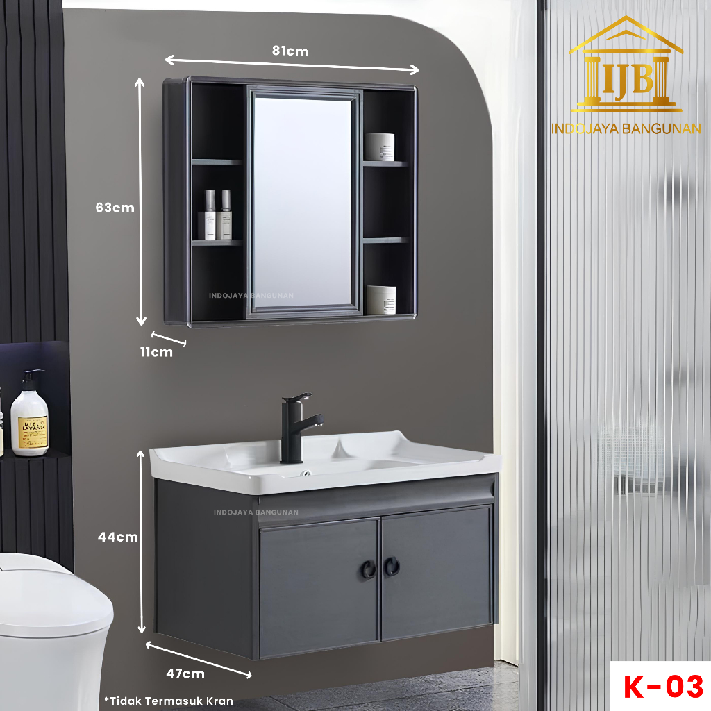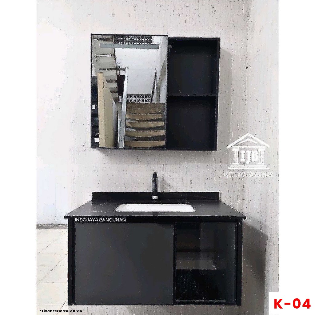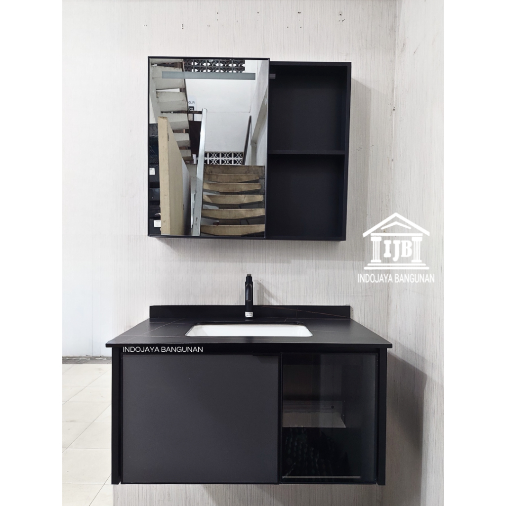 Paket Kabinet Wastafel Gantung 80 Cermin Lemari Rak Kamar Mandi Modern Minimalis Anti Air Rayap Hitam Abu Abu
