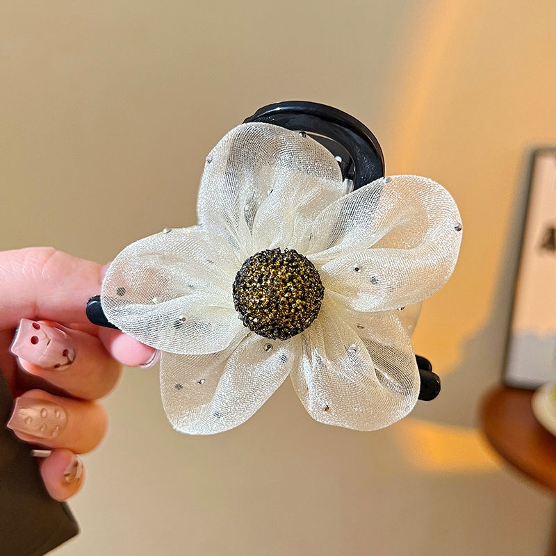 Calla Jepit Rambut Bunga Mode Korea /Aksesoris Rambut Wanita Trendi dengan Rhinestone & Jaring, Cocok untuk Harian/Pesta