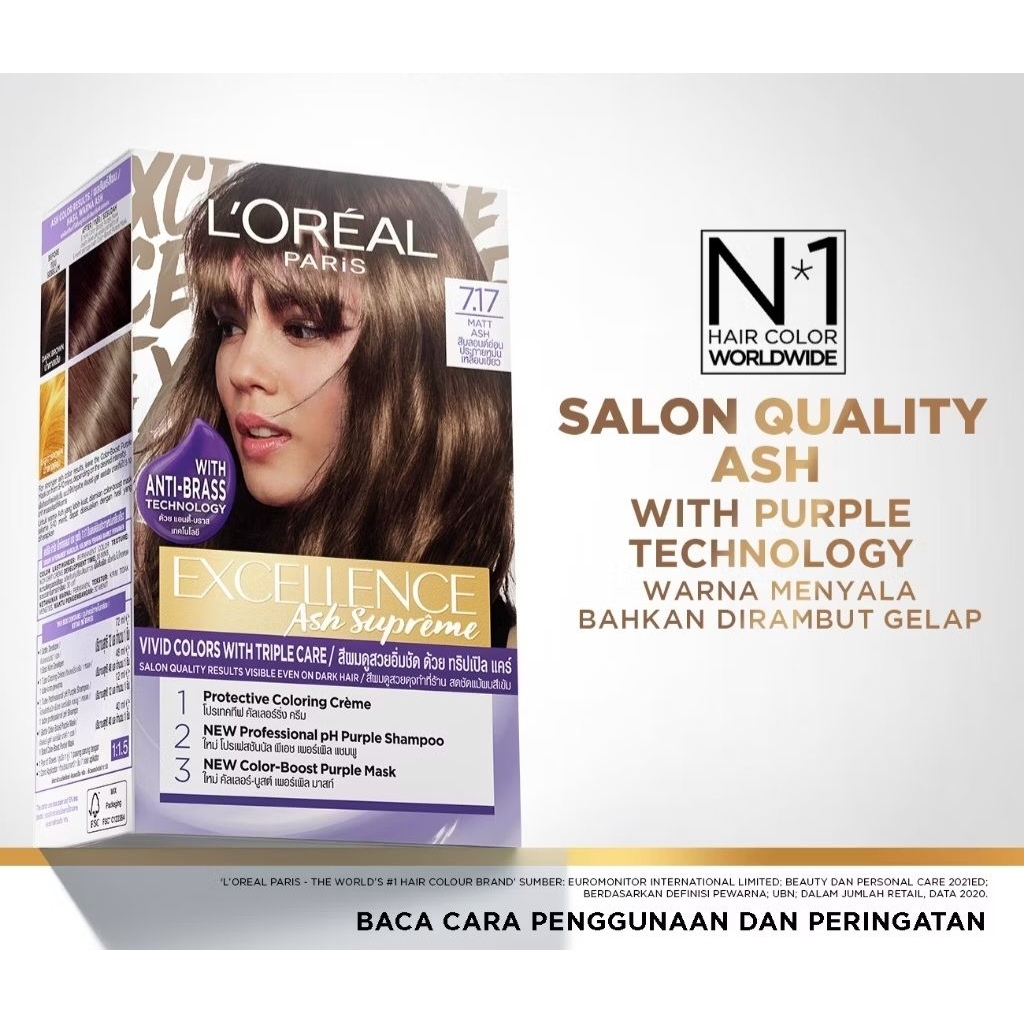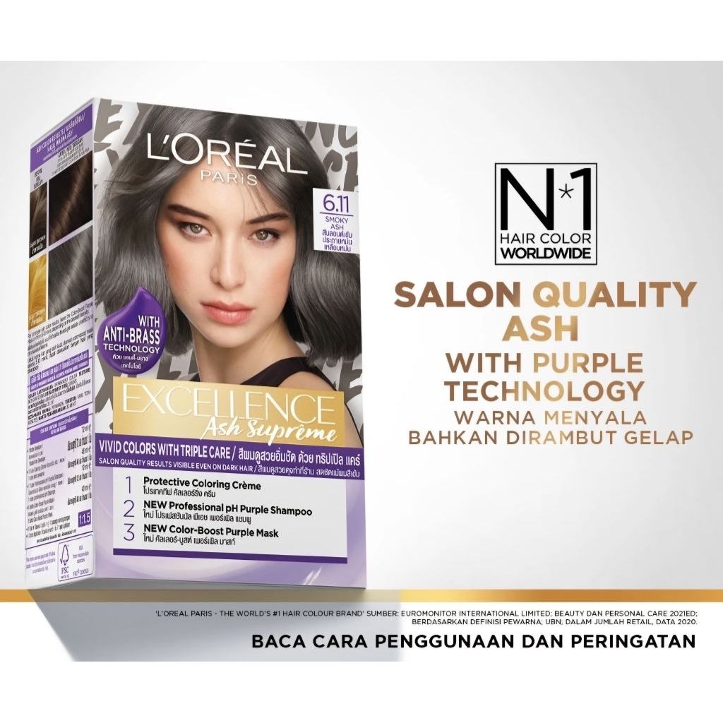 [BPOM] LOREAL Paris Excellence Ash Supreme Hair Color | EXP 2028 | Matt / Moderate / Smoky / Silver | Cat Pewarna Rambut Permanen
