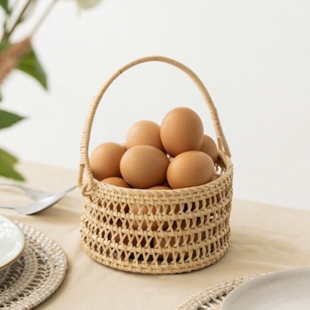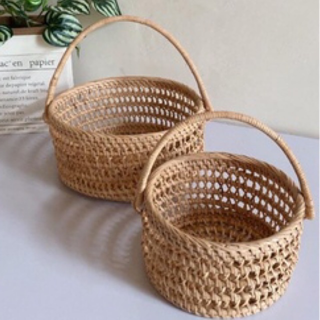 Keranjang Rotan Bulat Hiasan Dapur Rumah Aesthetic Naja Basket Handle Rattan Premium