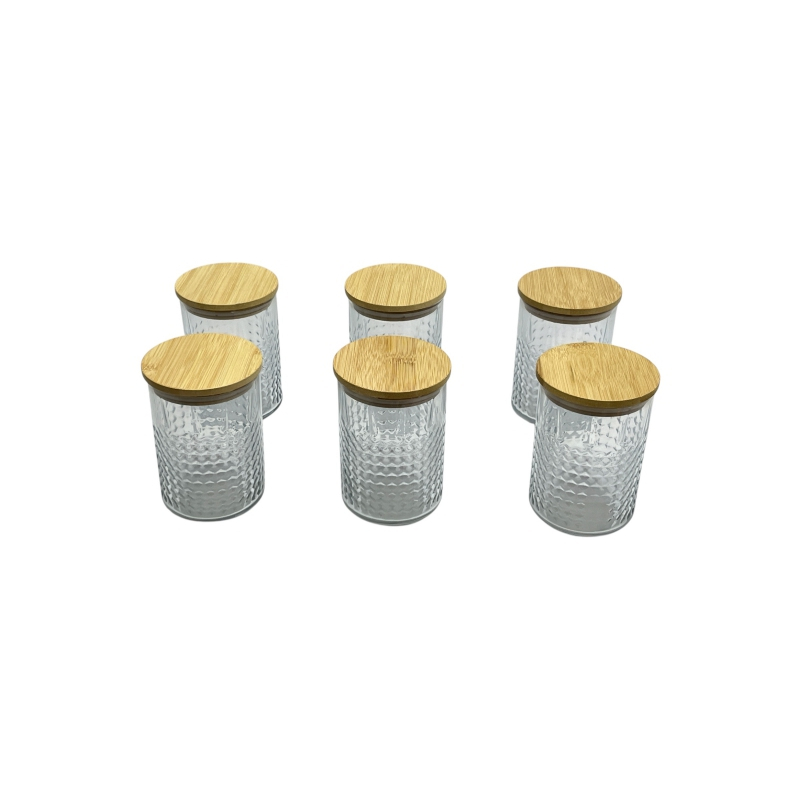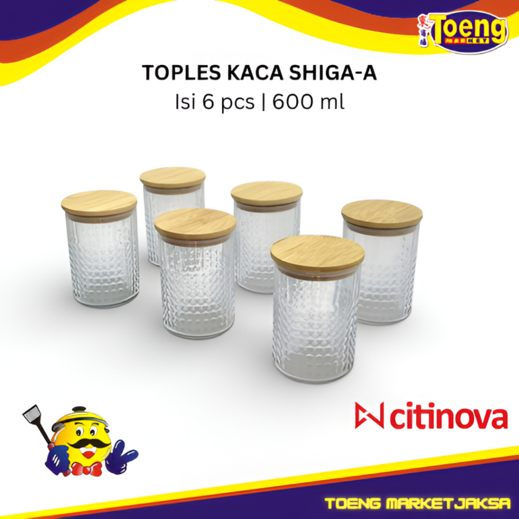 Toples Kaca Estetik Tutup Motif Kayu 790 ml isi 6 pcs - TOPLES SHIGA-A (TUTUP KAYU) (6pcs) CITINOVA+BBL