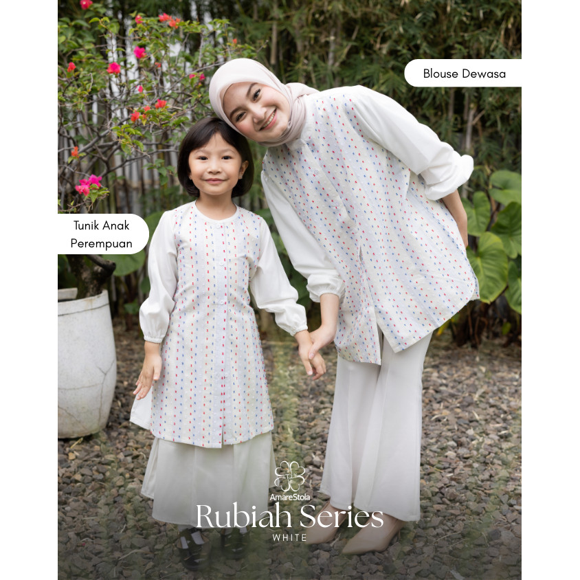 Amarestola - Rubiah Series White Sarimbit Baju Lebaran 2026 / Tunik Wanita / Blouse Wanita / Kemeja Koko Pria / Kemeja Koko Anak / Tunik Anak