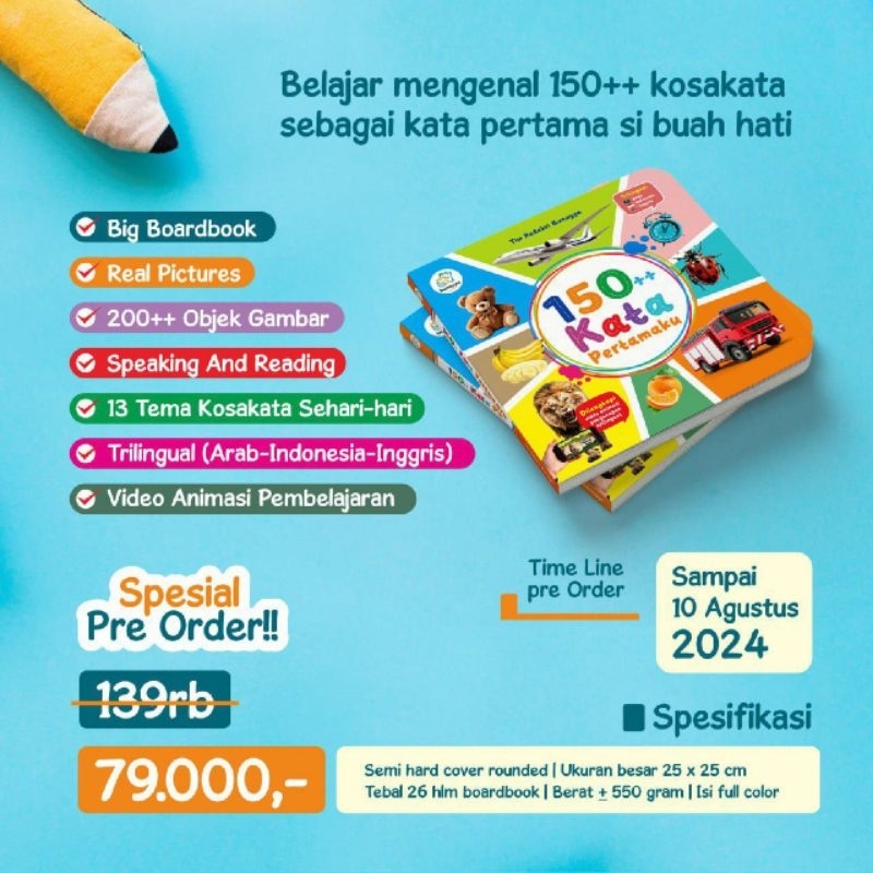 [3 Bahasa] Boardbook Buku Anak 150 Kata Pertamaku Usia ±1 tahun Buku Bayi Buku Balita Usia 1 2 3 4 5 6 tahun Kado Lahiran