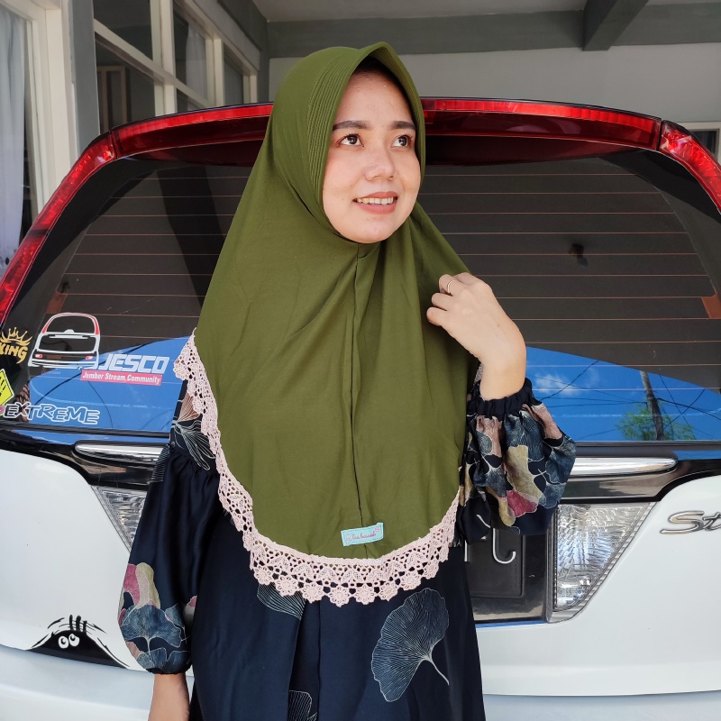 Jilbab Bergo Instant Renda Syari Hijab Instan Kerudung Daily Premium Khimar Casual Bahan Kaos Pet Jersey Renda Bordil Murah COD