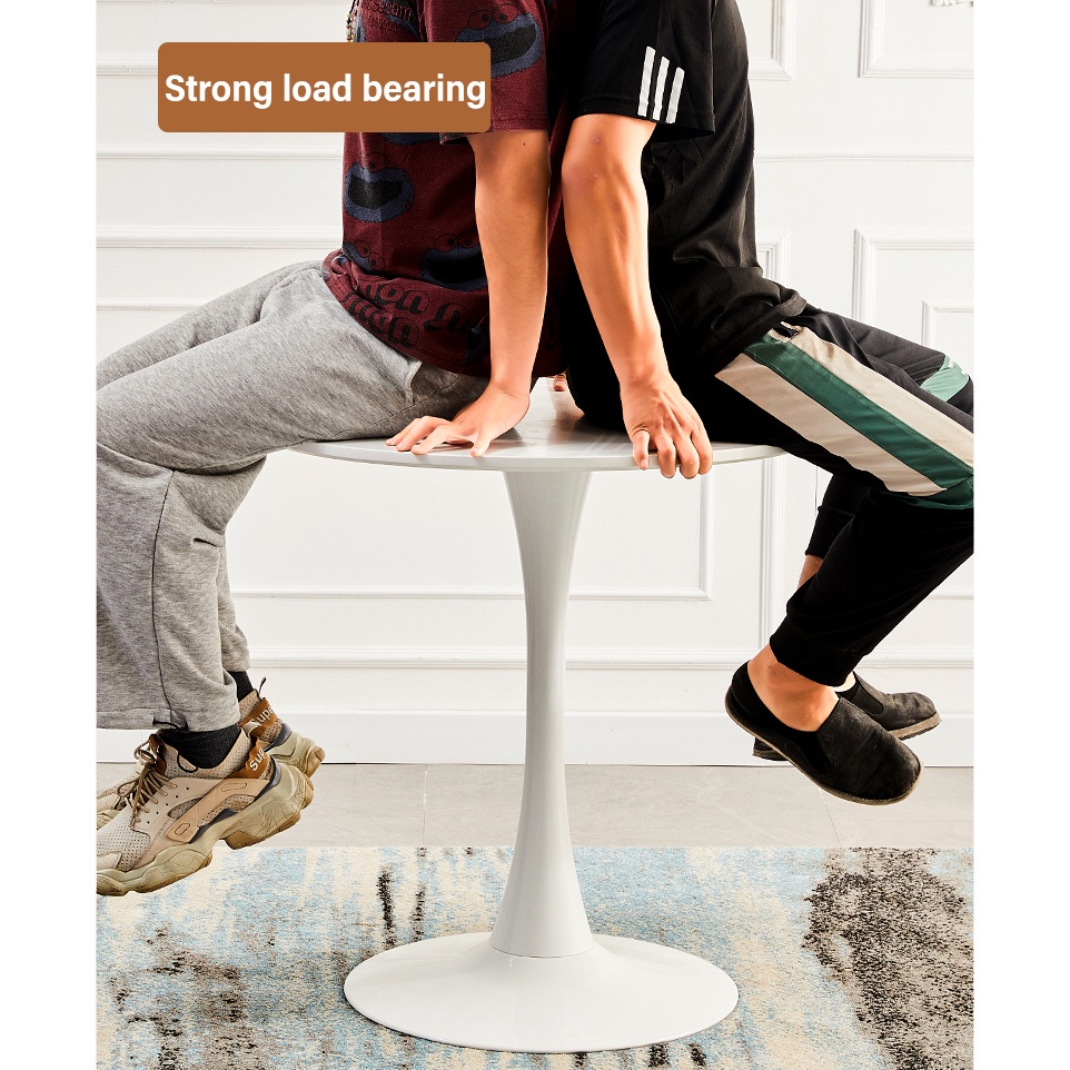 IH Meja Bulat Modern Meja Samping Tamu Meja Makan Minimalis Tiang Tunggal Meja Kafe
