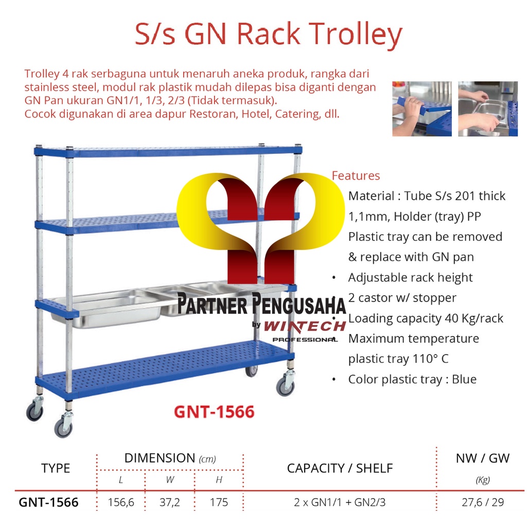 GETRA GNT-1566 SS GN Rack Trolley / Rack Trolley Serbaguna
