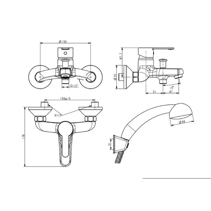 American Standard Keran Mandi - Seva Exposed Bath & Shower Mixer