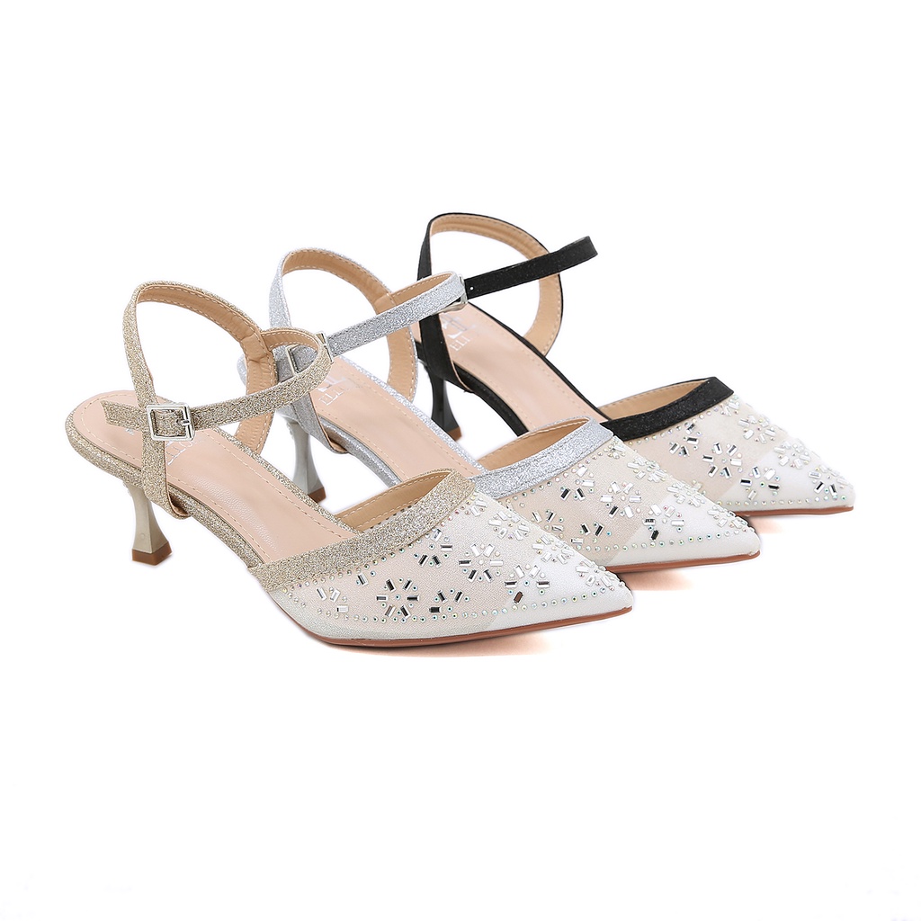 ELLORA EB 624-46 Sepatu Pesta Wanita Heels Ankle Strap 6cm Import
