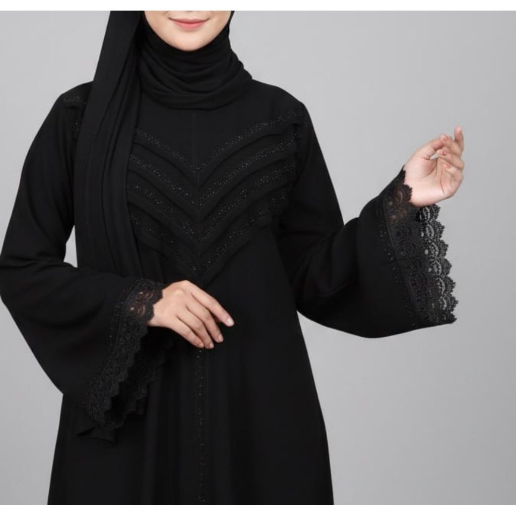 Abaya Nisrin Mewah Renda Dan Mata Hitam