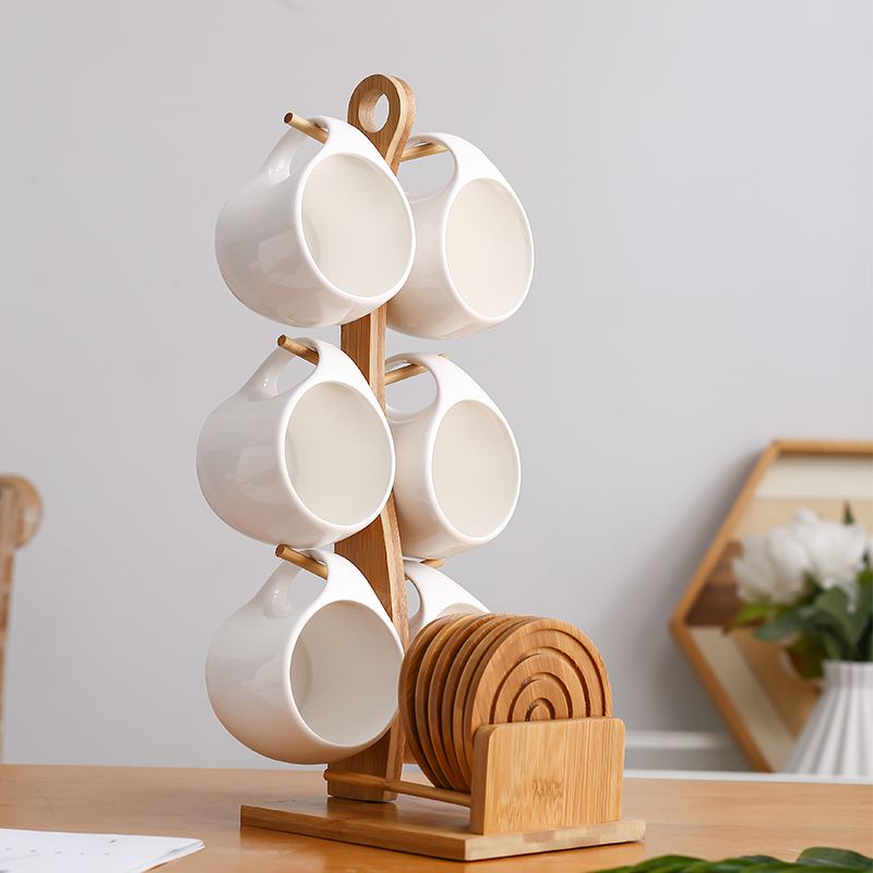 Set Gelas Keramik Plus Stand Bambu / Mug Set Stand Bambu