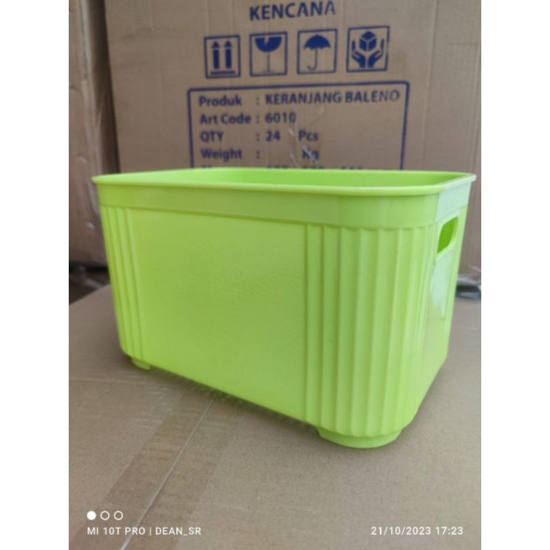 Keranjang BALENO ( Wadah Baleno serbaguna )Sekoli isi 24pcs (2Lusin)HARGA PER PCS Ukuran 15 x 17 x 25cmTerbuat dari bahan PP berkualitas tinggi, sudah BPA free,sudah terbukti produk Kencana selalu berbahan Tebal, Kuat dan Tahan lama LT BAGUS MURAH CANTIK