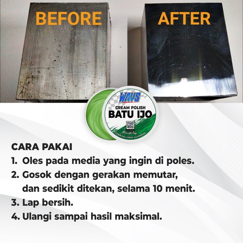 Batu Ijo Cream Polish / Batu Hijau Krim Poles Pengkilap Mesin Velg Stainless Crom Mobil Motor