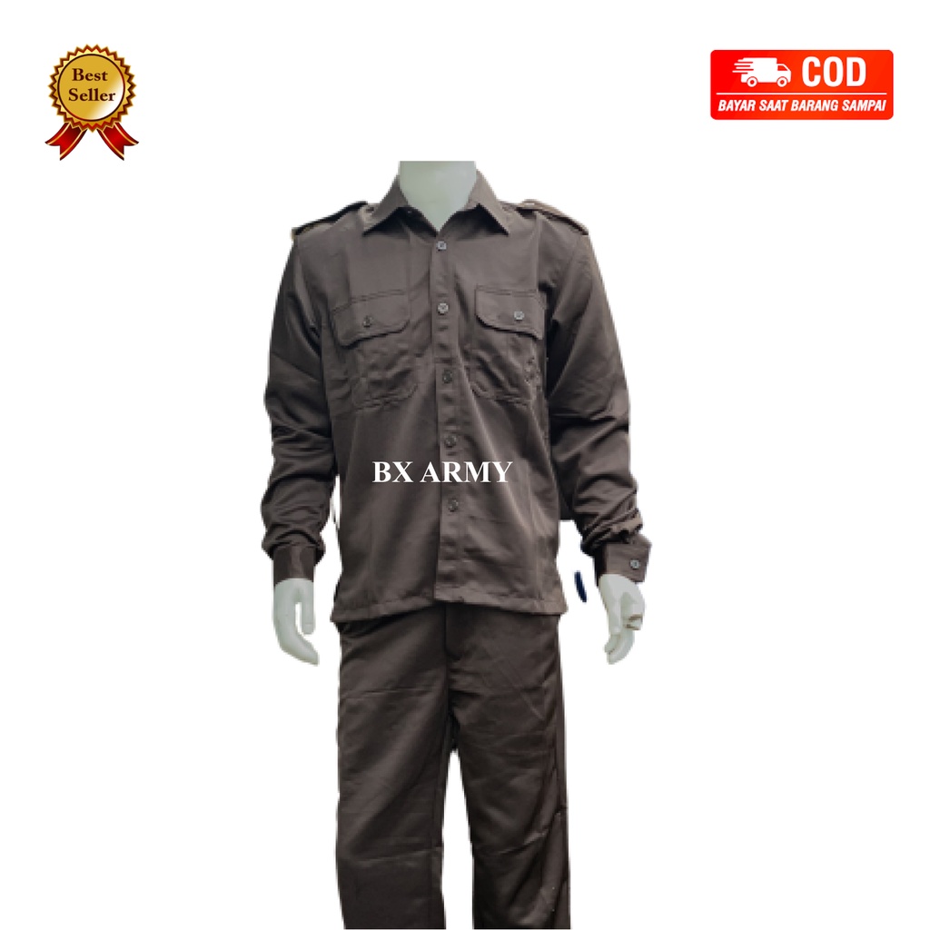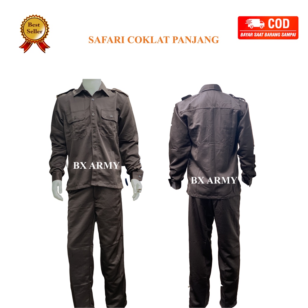 seragam safari seucurity coklat terbaru lengan panjang satpam bodyguard supir, paspampres,supir,ATX