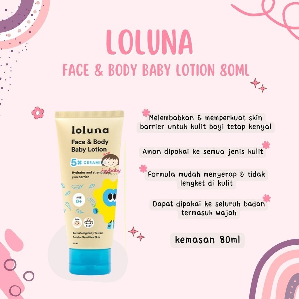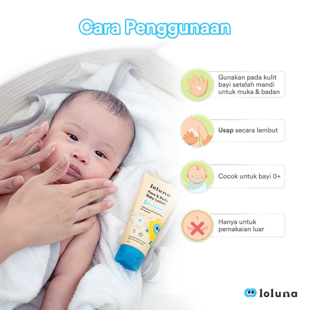 Loluna Face & Body Baby Lotion 80ml - Lotion Krim Muka dan Badan Bayi dan Anak / Krim untuk Newborn / 5x Ceramide