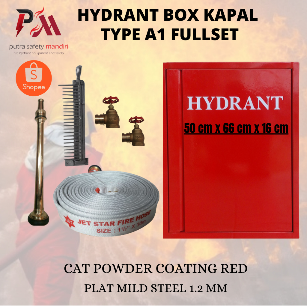 FIRE HYDRANT BOX KAPAL KOTAK PENYIMPANAN PERLENGKAPAN DAMKAR TYPE A1 PLAT MILD STEEL 1.2 MM SIZE 52x66x16 CM