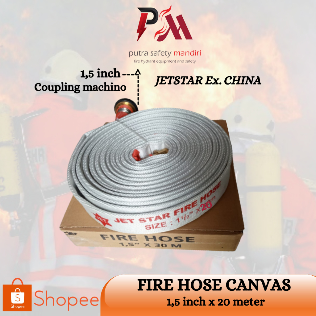 FIRE HOSE JETSTAR CHINA CANVAS 1.5" x 20 M SELANG PEMADAM KEBAKARAN COUPLING MACHINO KUNINGAN 10 BAR