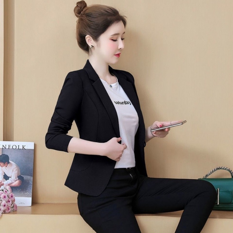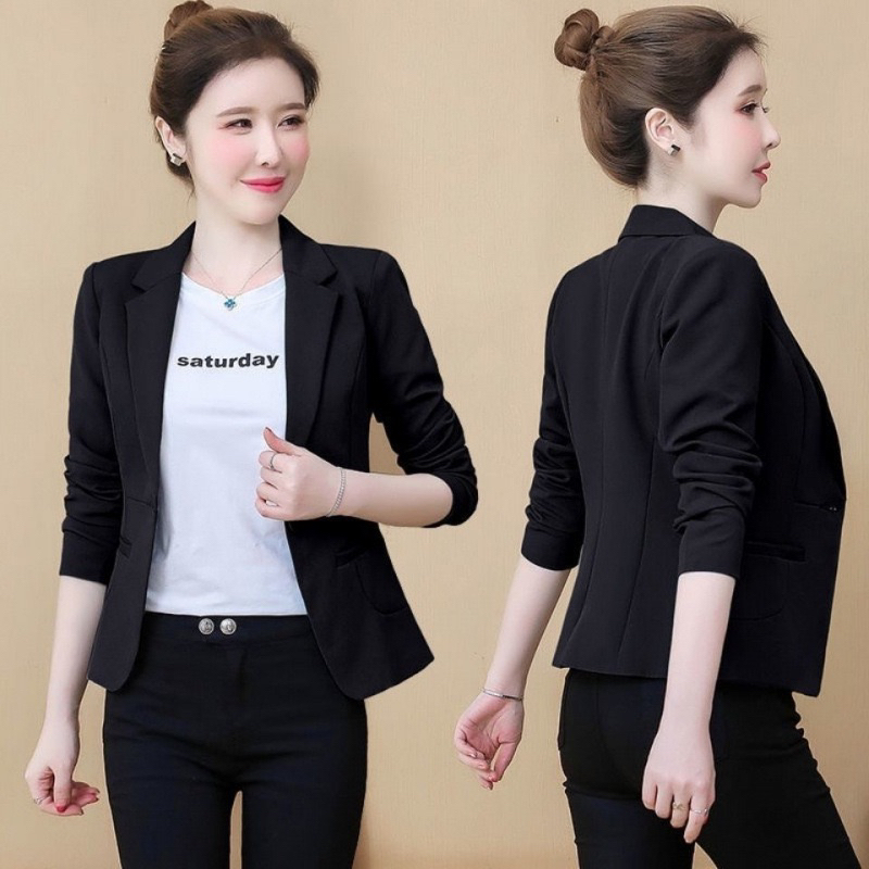 Chloebeautyshop - Blazer Kerja Wanita Hitam Lengan Panjang / Outer Skripsi Wawancara Wisuda Kantor