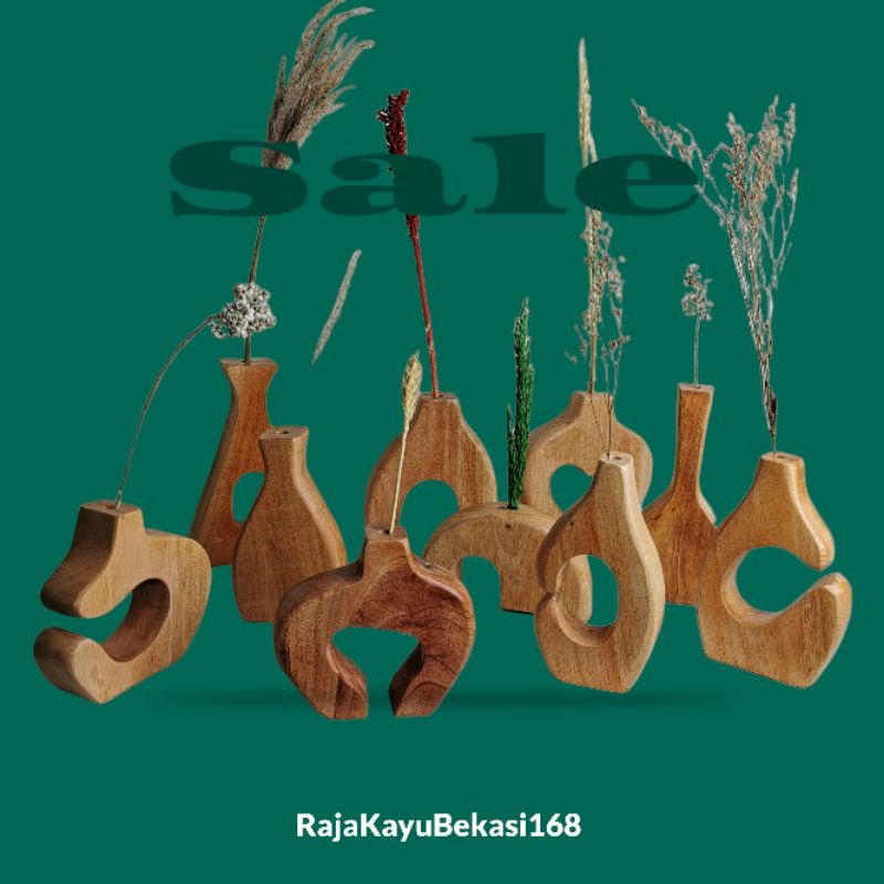 VAS BUNGA AESTHETIC KAYU MAHONI DEKORASI PAJANGAN RUMAH